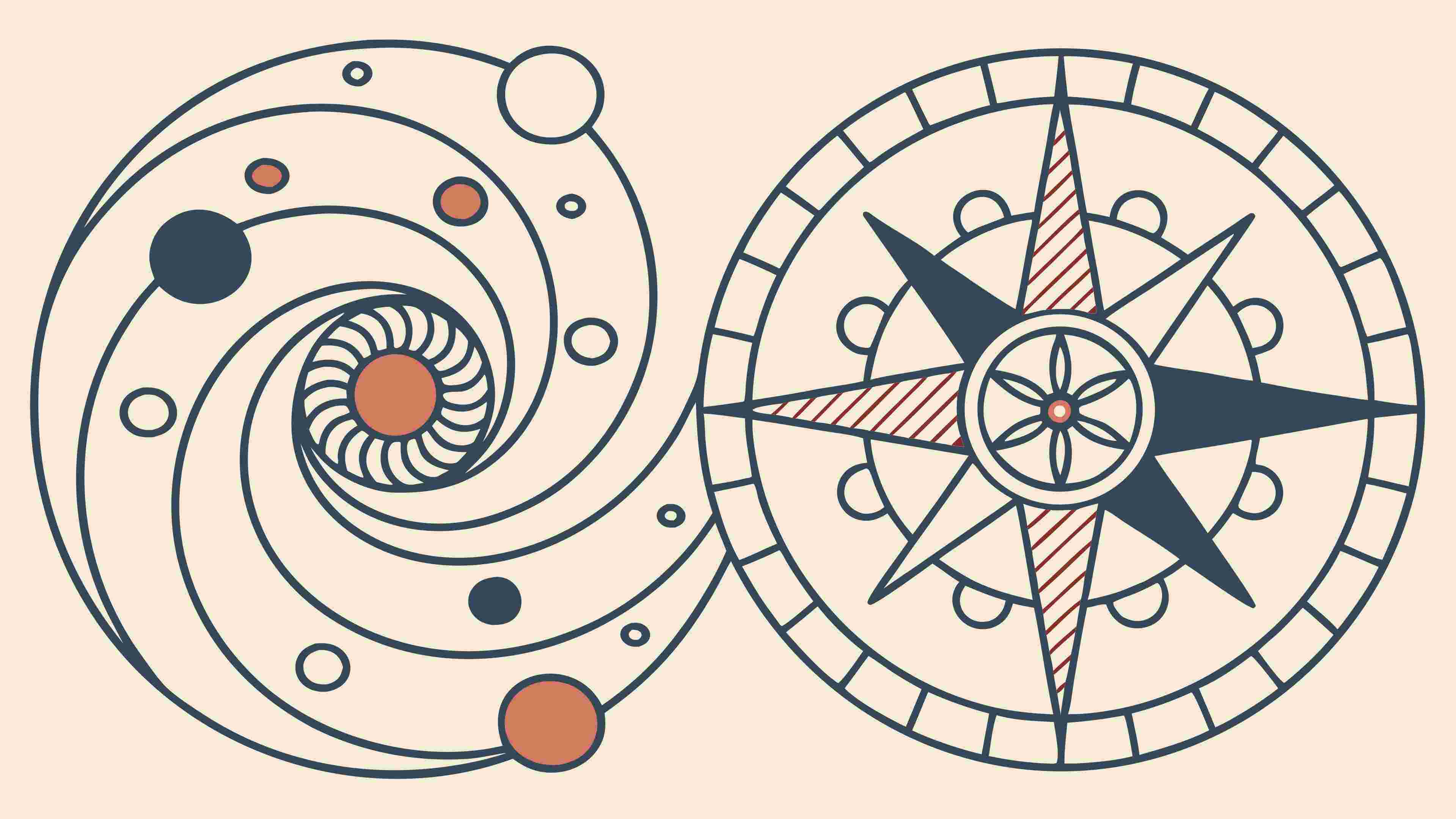 Abstract Compass Rose & Spiral Geometric Vector, vector design Generative AI