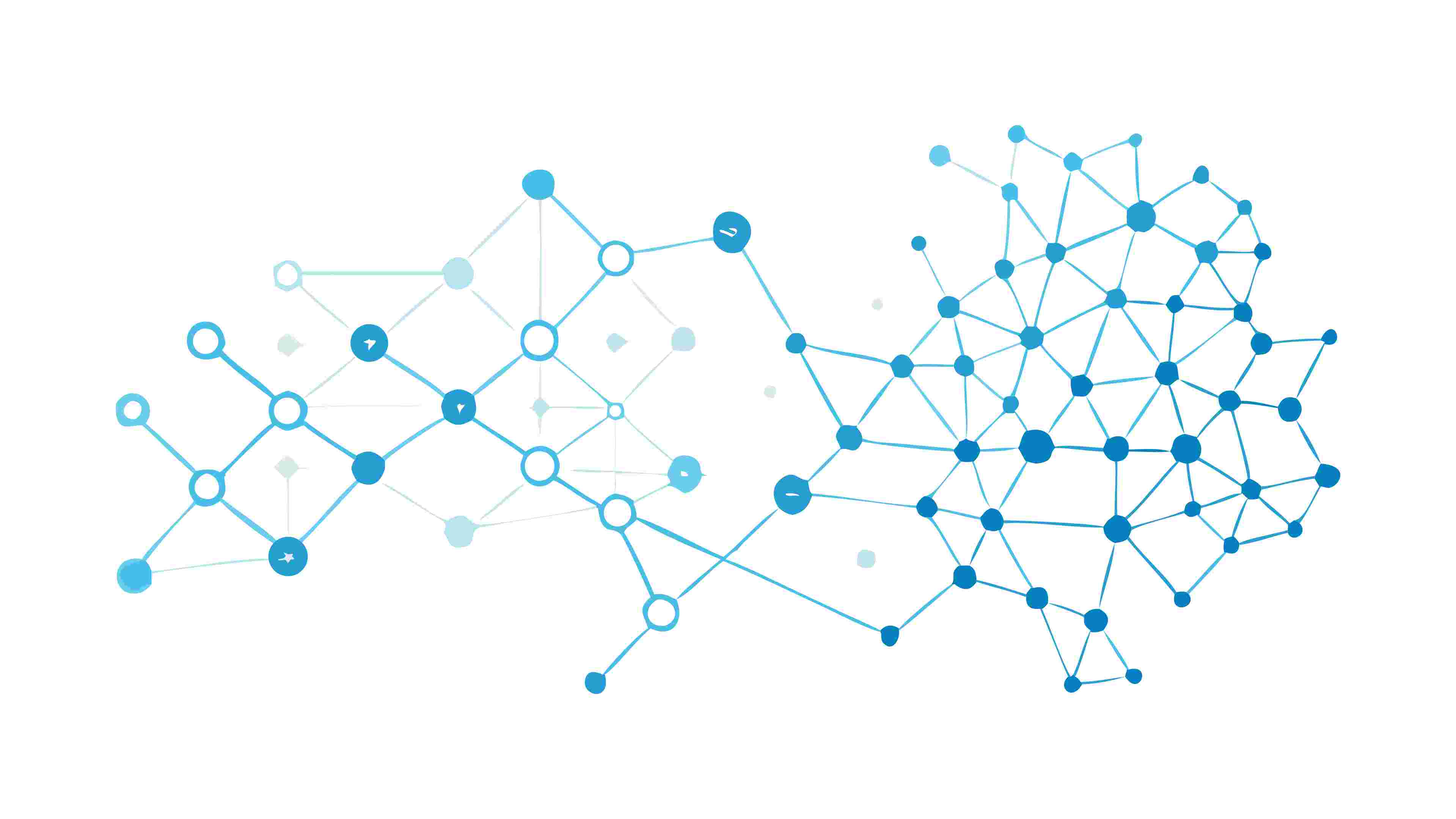 A geometric abstract vector illustration featuring a network of connected blue dots, creating a digital and scientific aesthetic. Ideal for themes of data, communication, technology, or cybersecurity in modern graphic design and presentations, vector design Generative AI.