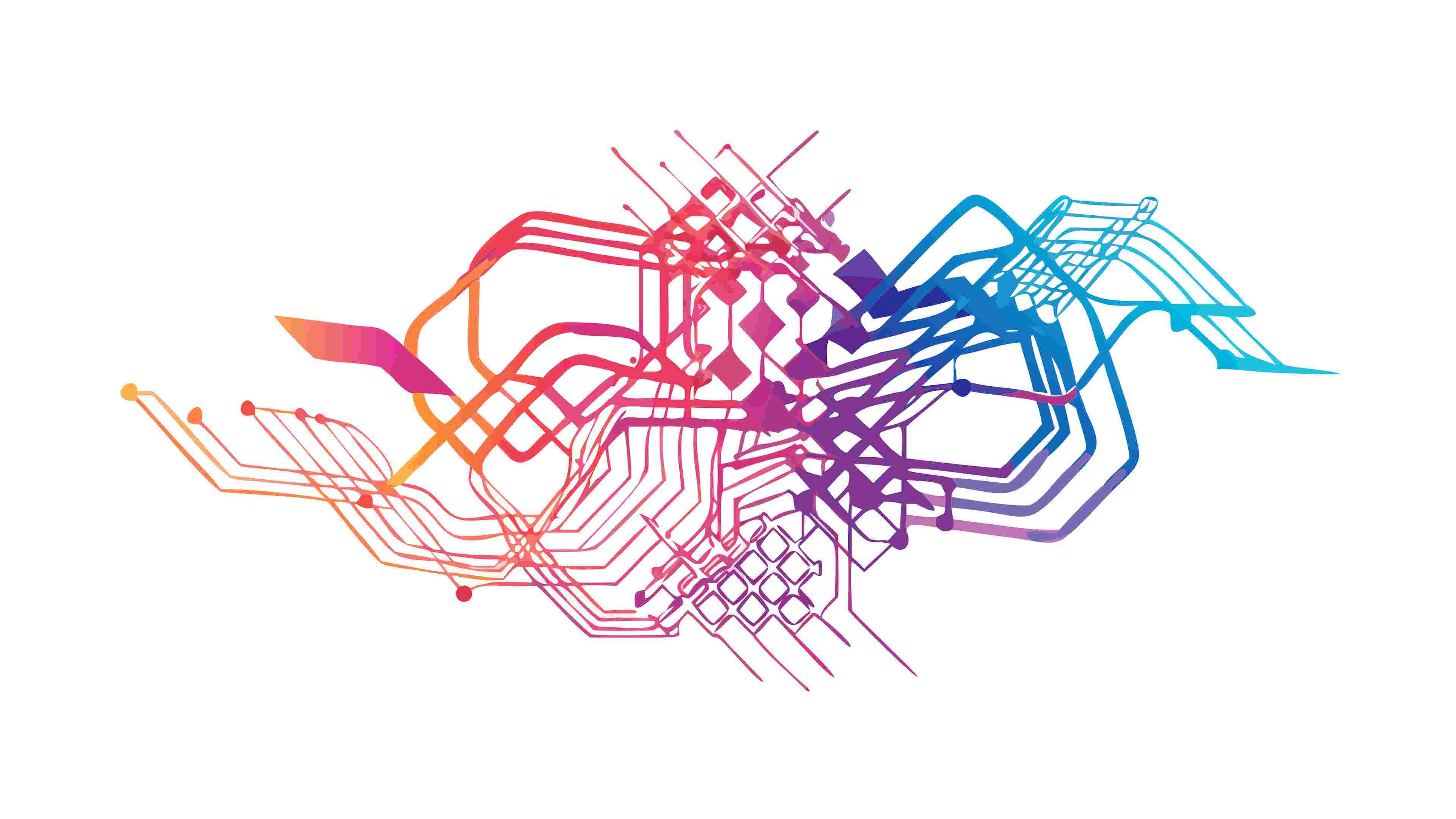 An abstract vector illustration featuring complex intersecting geometric lines and shapes in dynamic colors. This graphic is perfect for modern tech backgrounds, digital art, or futuristic branding. It conveys complexity, connectivity, and abstract energy, suitable for designs that require a sophisticated, energetic, and visually intriguing appeal. vector design Generative AI