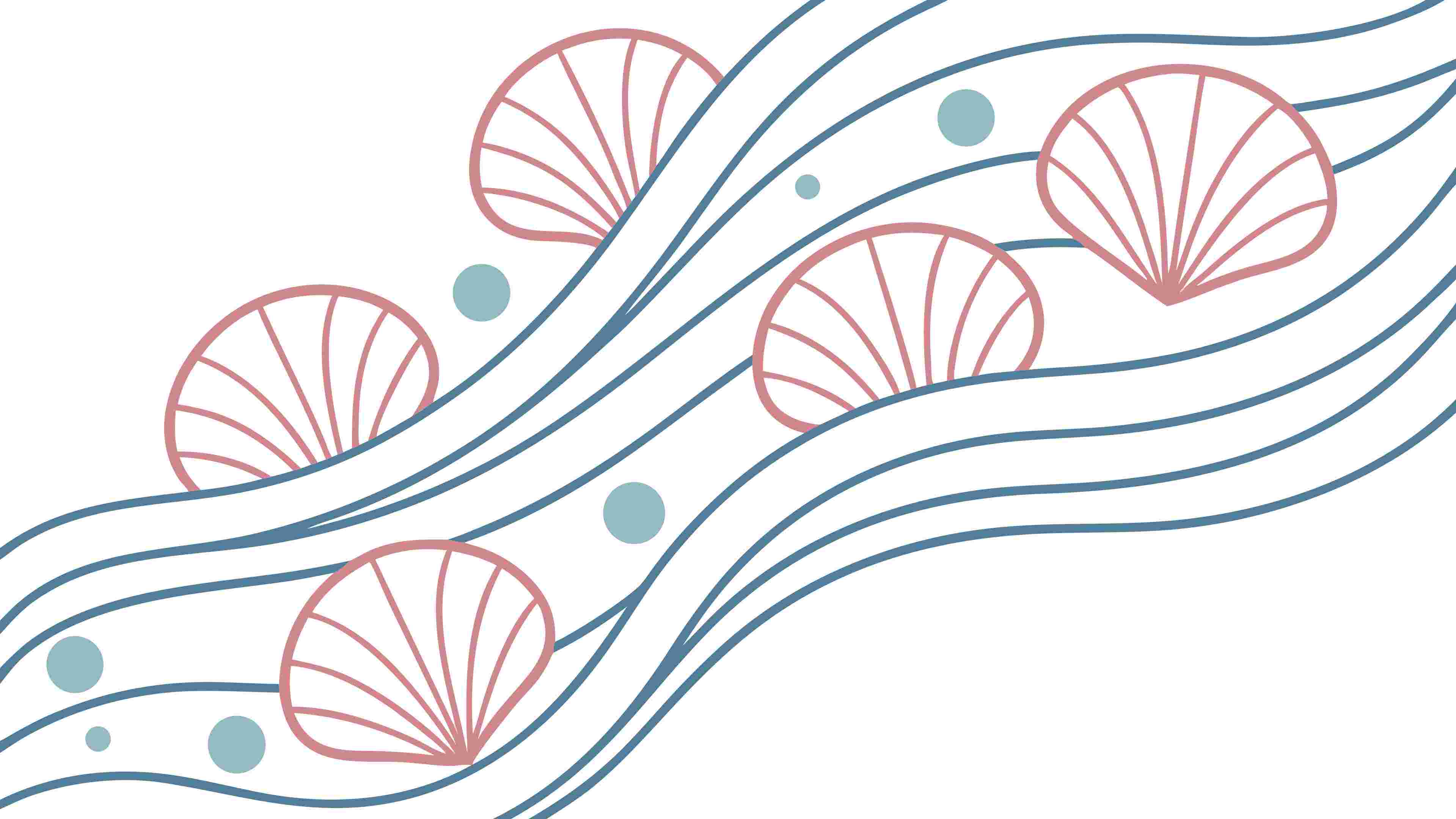 An abstract vector pattern composed of graceful ocean waves and delicate seashells, creating a serene and natural marine theme. This decorative design is perfect for coastal decor, beach-themed products, or tranquil backgrounds, vector design Generative AI