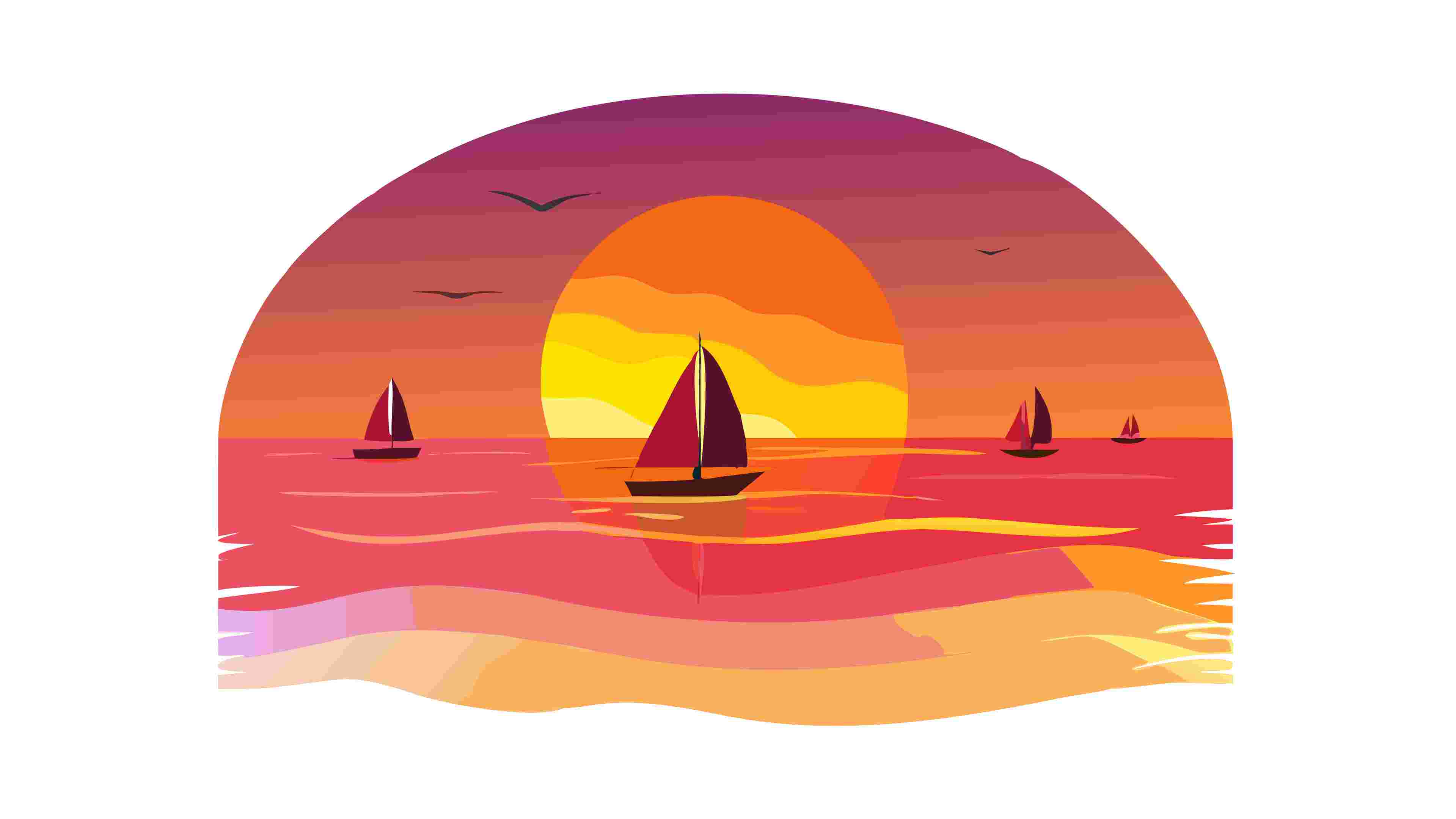 Abstract Sunset Seascape with Sailboats Vector Art, vector design Generative AI