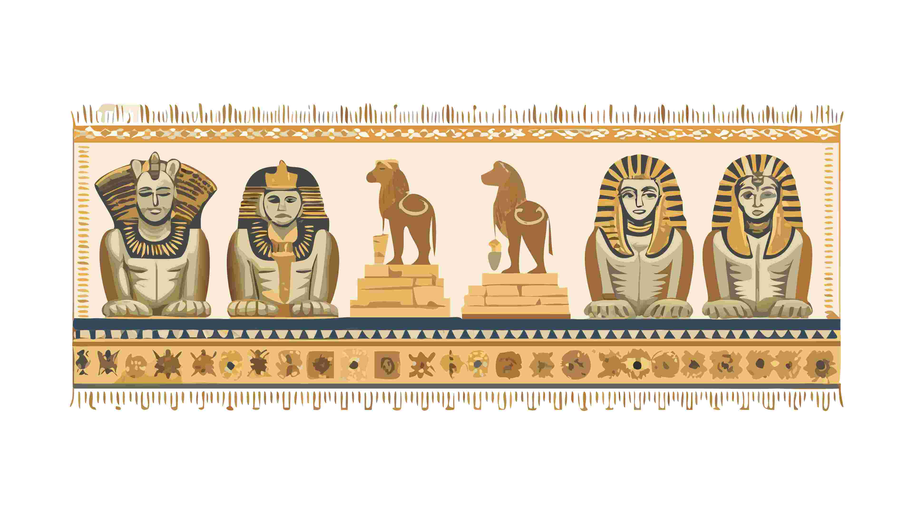 A fascinating vector illustration featuring a border composed of ancient Egyptian artifacts and symbols, including pharaoh heads, the Sphinx, and scarabs. This historical design is perfect for educational materials on ancient Egypt, cultural events, museum exhibits, or themed entertainment. It evokes the mystique and grandeur of an ancient civilization, adding an authentic and captivating touch, vector design Generative AI.