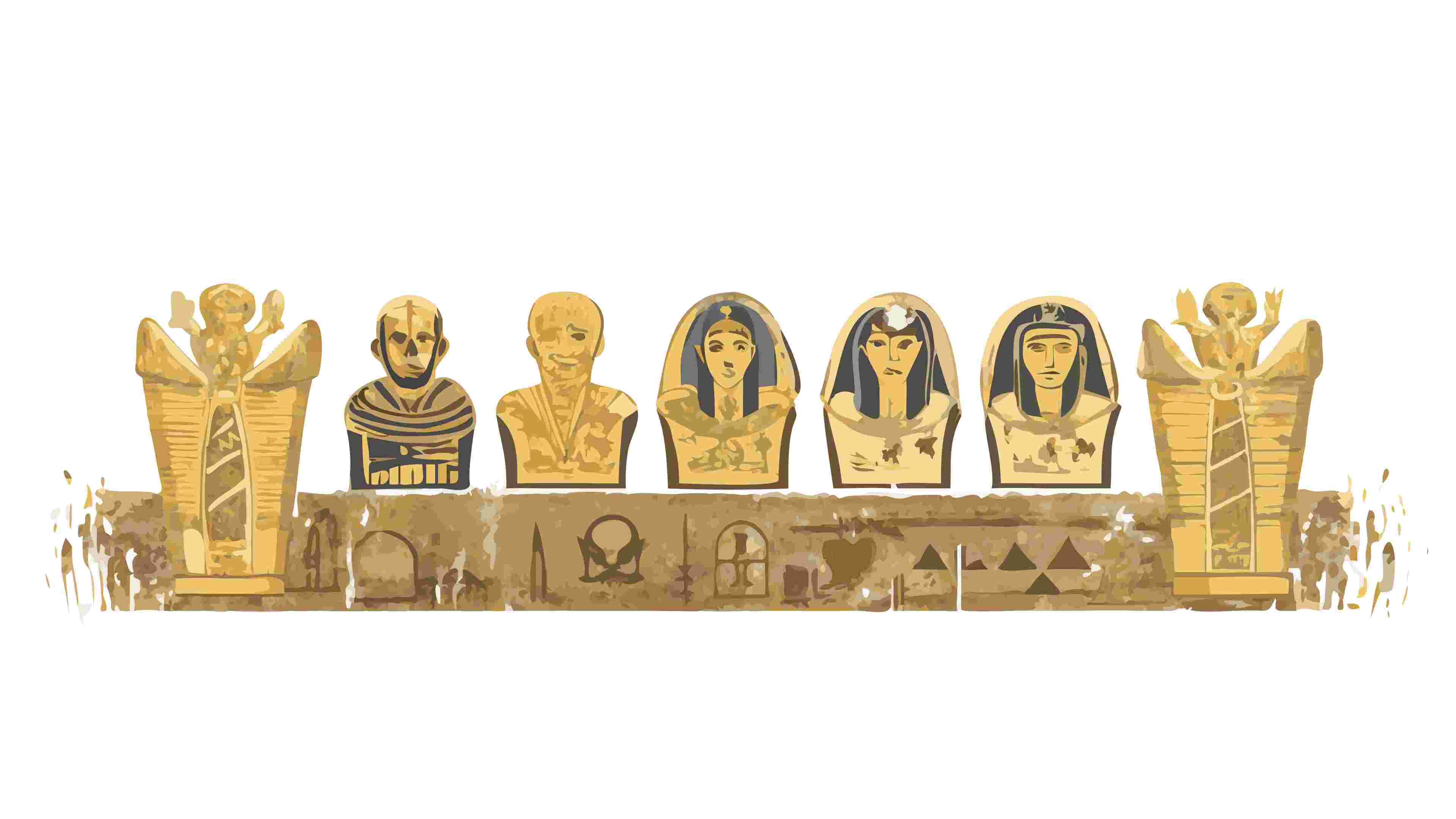 Ancient Egyptian Pharaoh Busts and Golden Statues, vector design Generative AI