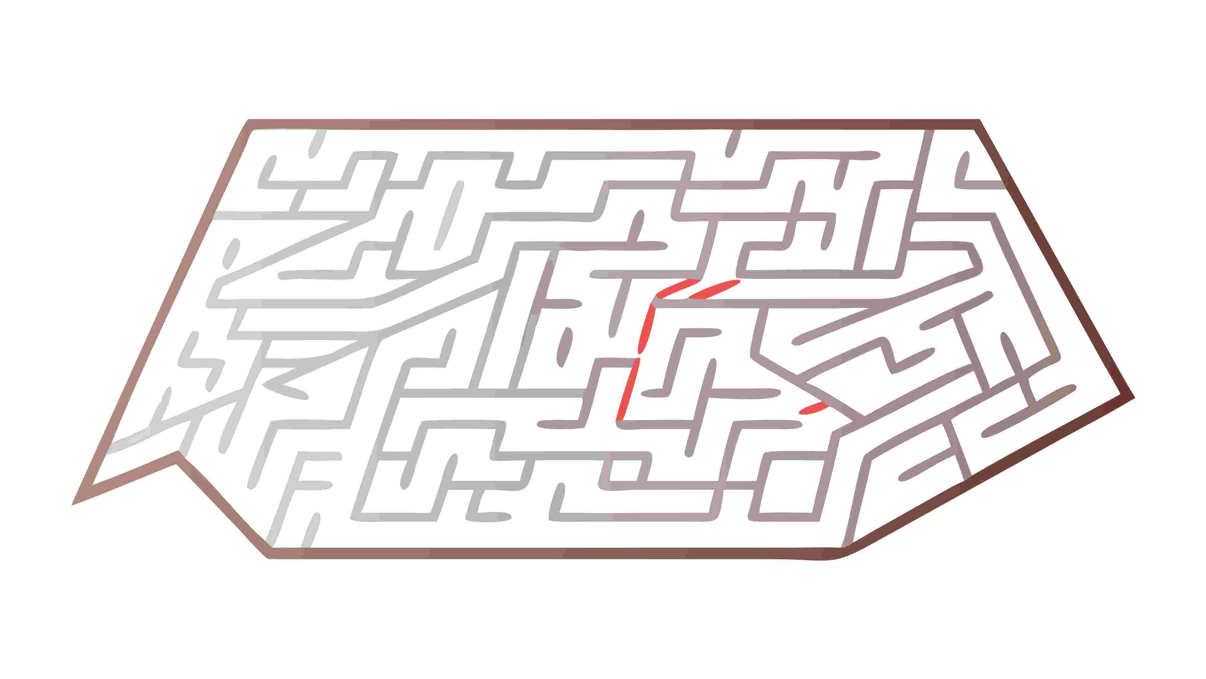 A dynamic vector illustration of a maze on an angled plane, with a highlighted red path indicating a solution or goal. This engaging puzzle concept is ideal for interactive games, educational presentations, or visual metaphors for decision-making, vector design Generative AI