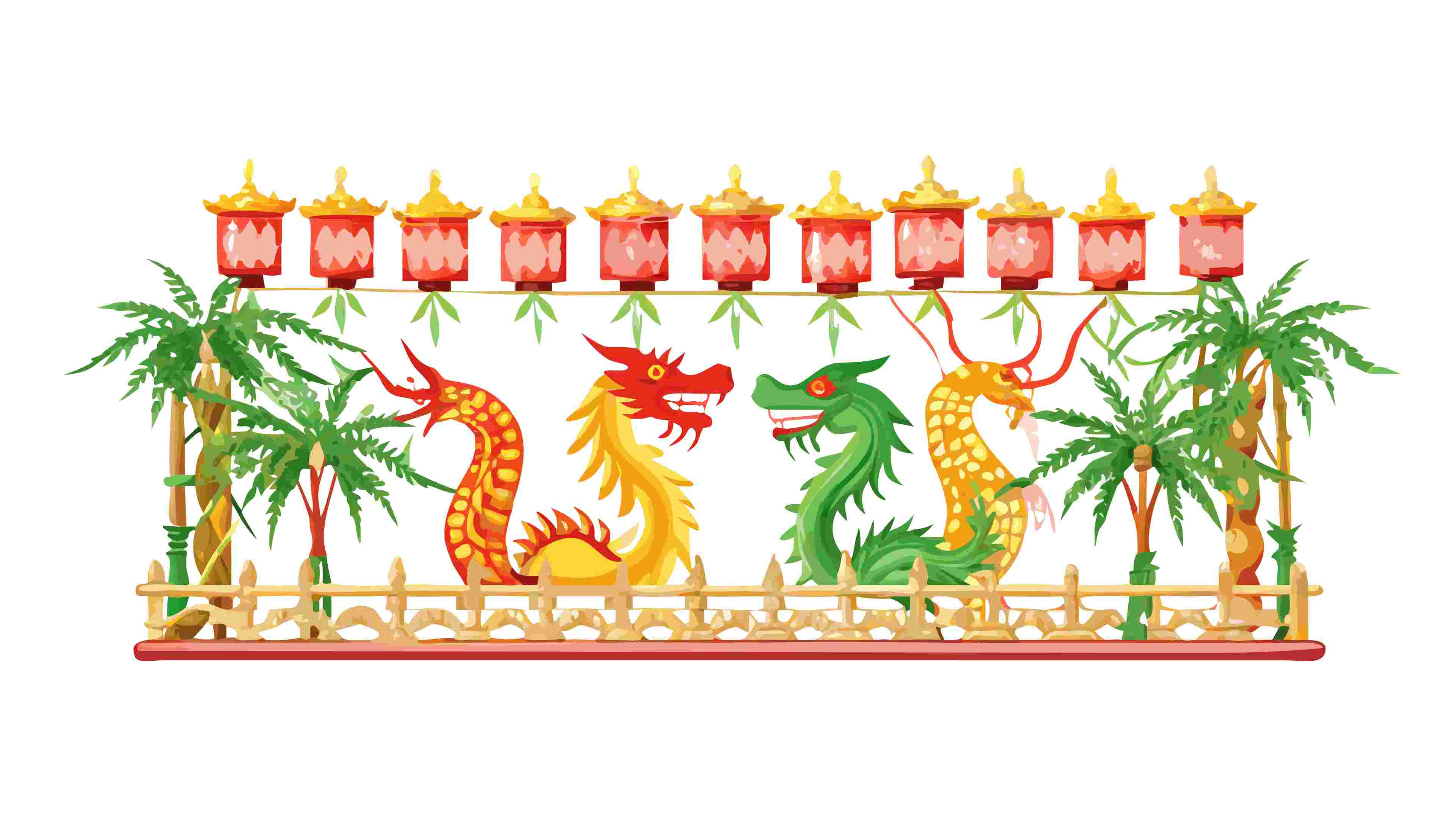 An auspicious vector border showcasing an elegant Asian dragon against a backdrop of golden cloud motifs and traditional lanterns. This rich and symbolic design is ideal for cultural celebrations, decorative art, or good fortune themes, vector design Generative AI