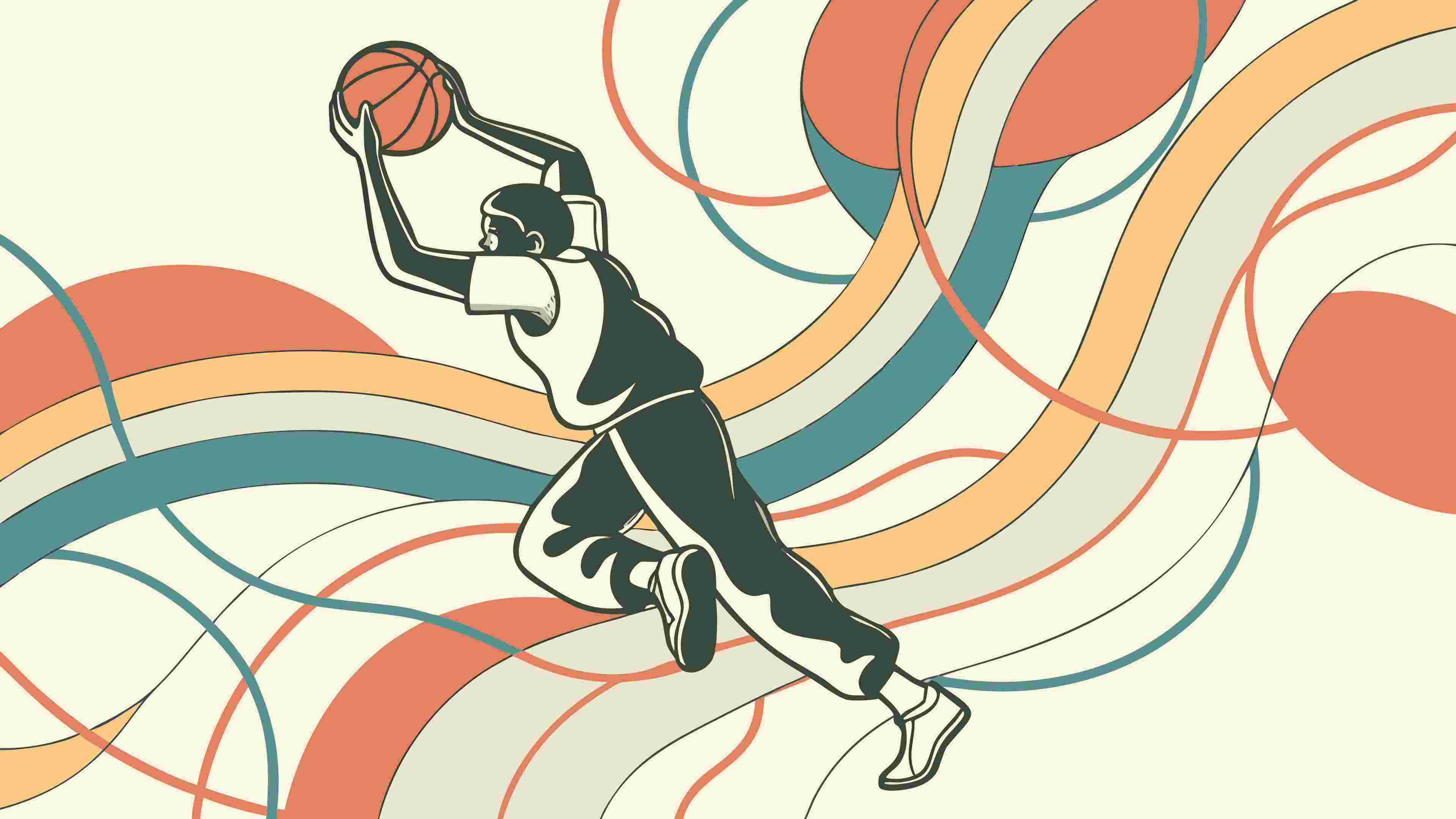 A powerful vector illustration depicting a basketball player in mid-action, surrounded by dynamic abstract lines and shapes. This energetic design captures the speed and agility of the sport, ideal for athletic branding, sports events, or dynamic visual content, vector design Generative AI