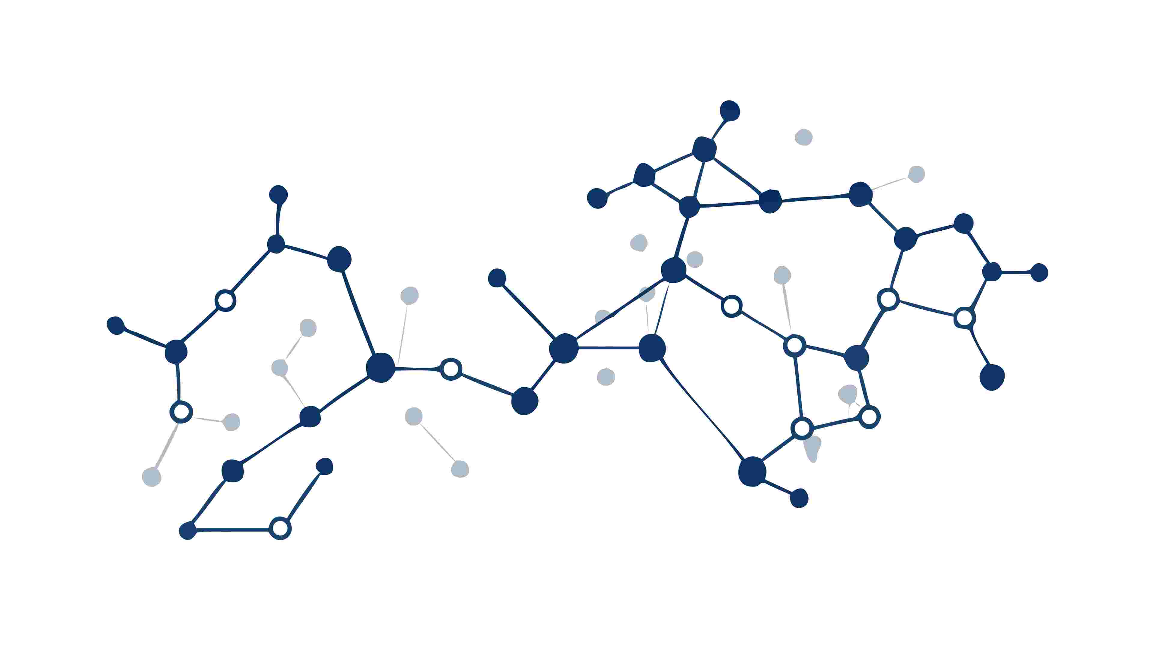 A geometric abstract vector illustration of a blue molecular structure or network, resembling interconnected atoms. Ideal for scientific, medical, chemistry, or biotechnological themes, representing connections and fundamental building blocks, vector design Generative AI.