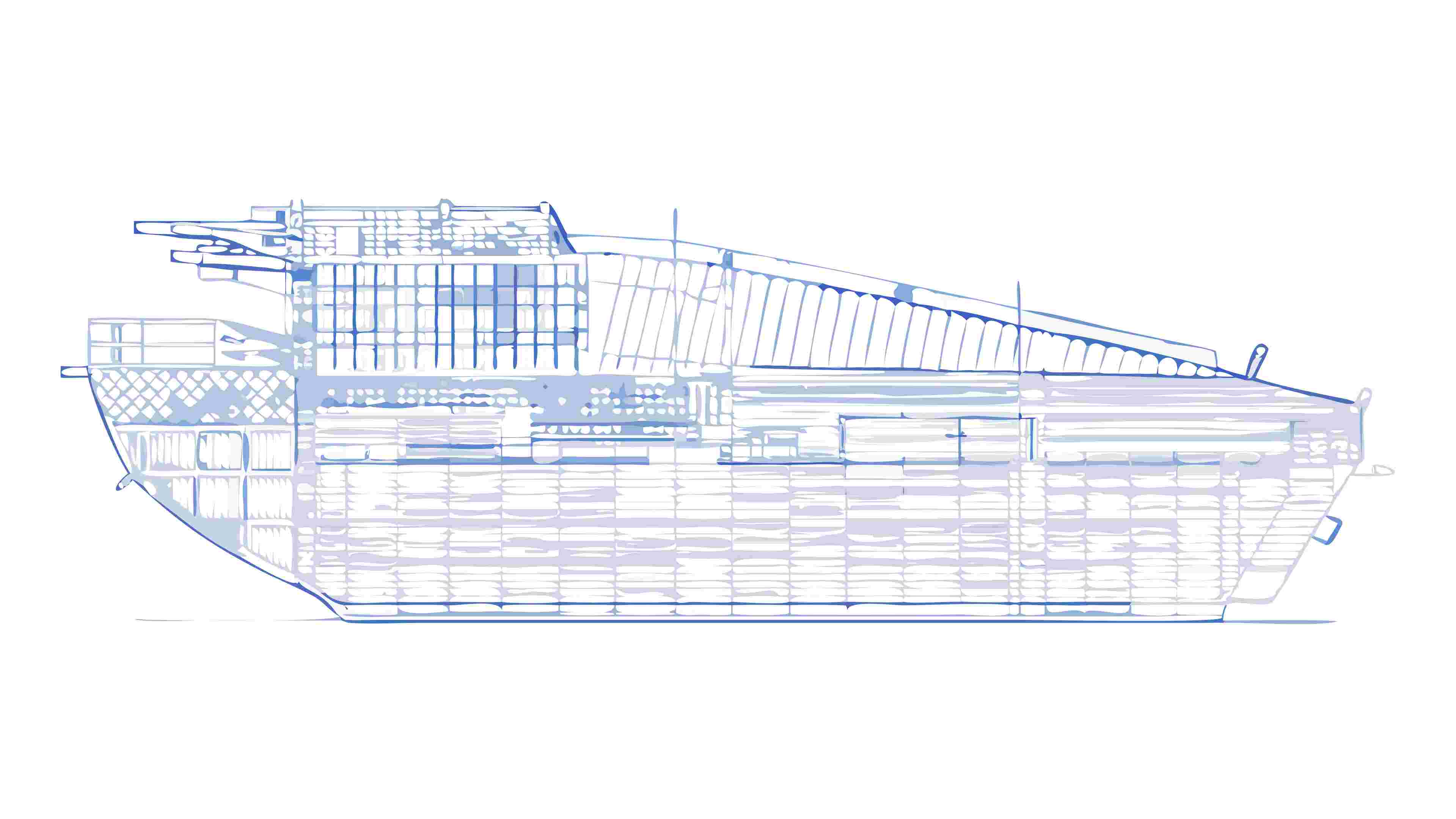 Blueprint of a Modern Naval Warship, vector design Generative AI