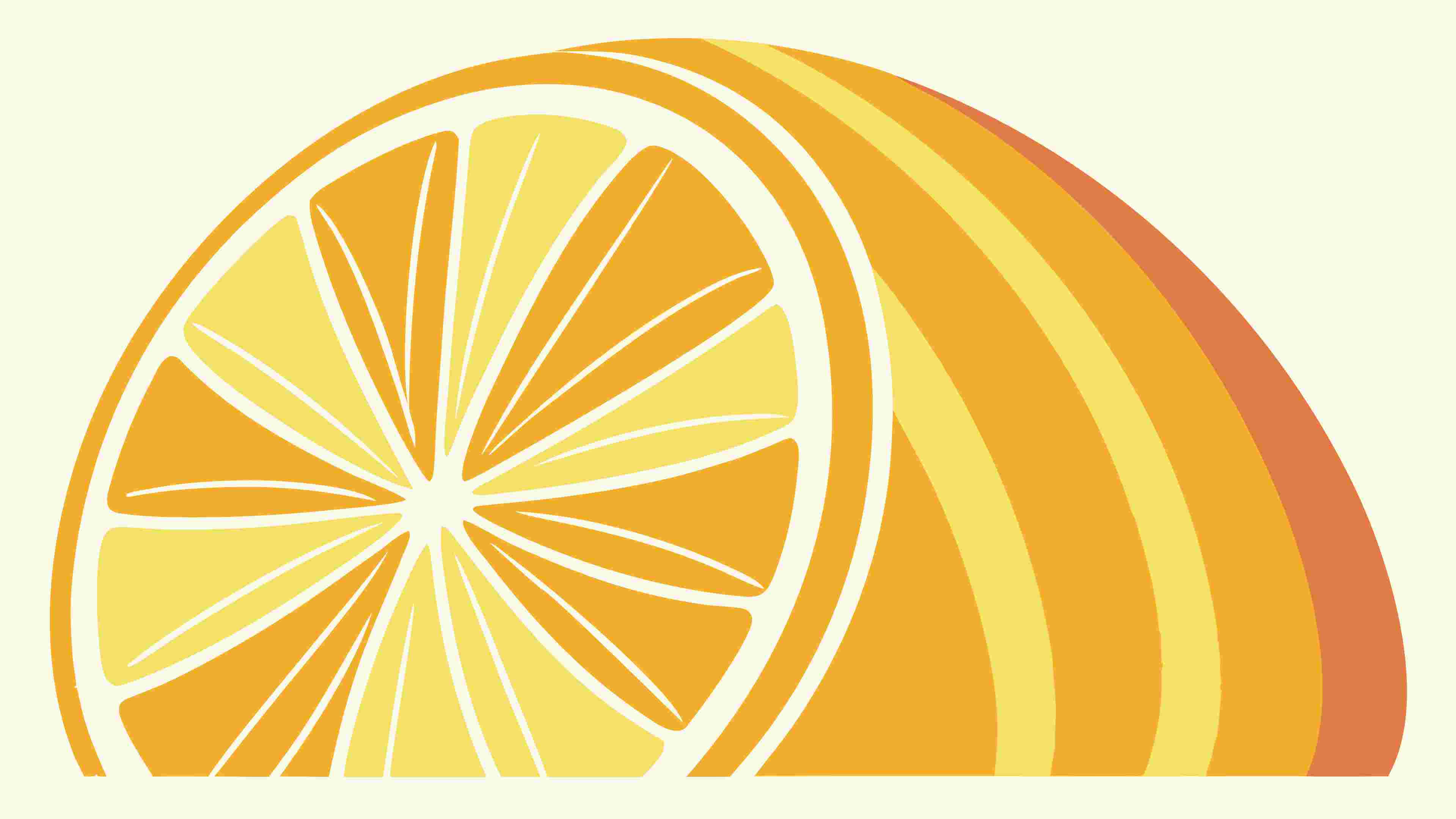 Bold Lemon Slice on Striped Orange Background, vector design Generative AI