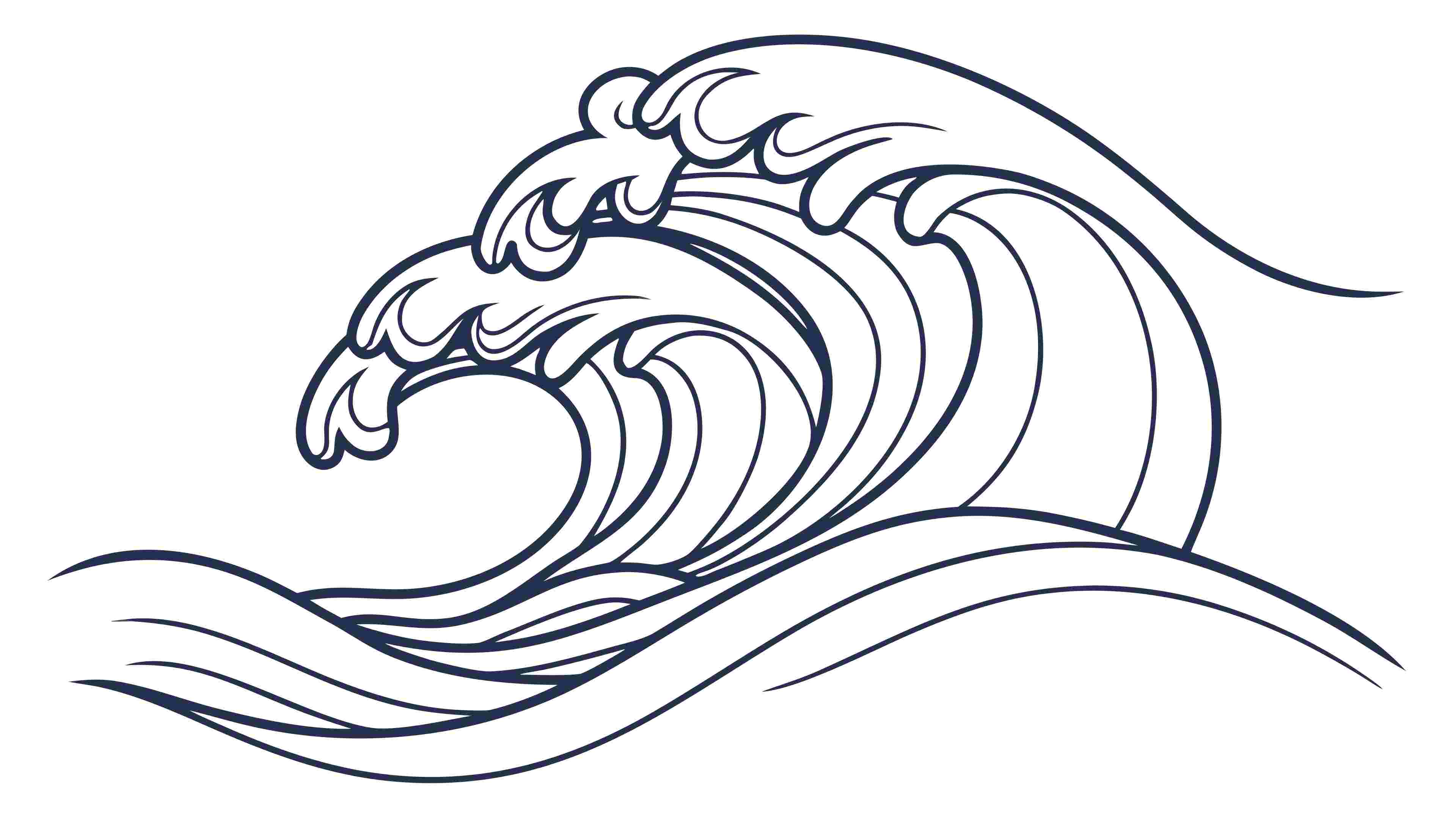 A bold vector graphic design of a powerful ocean wave, rendered as a clean, strong outline. This versatile element is perfect for minimalist logos, marine themes, or dynamic backgrounds, conveying the raw power of the sea, vector design Generative AI