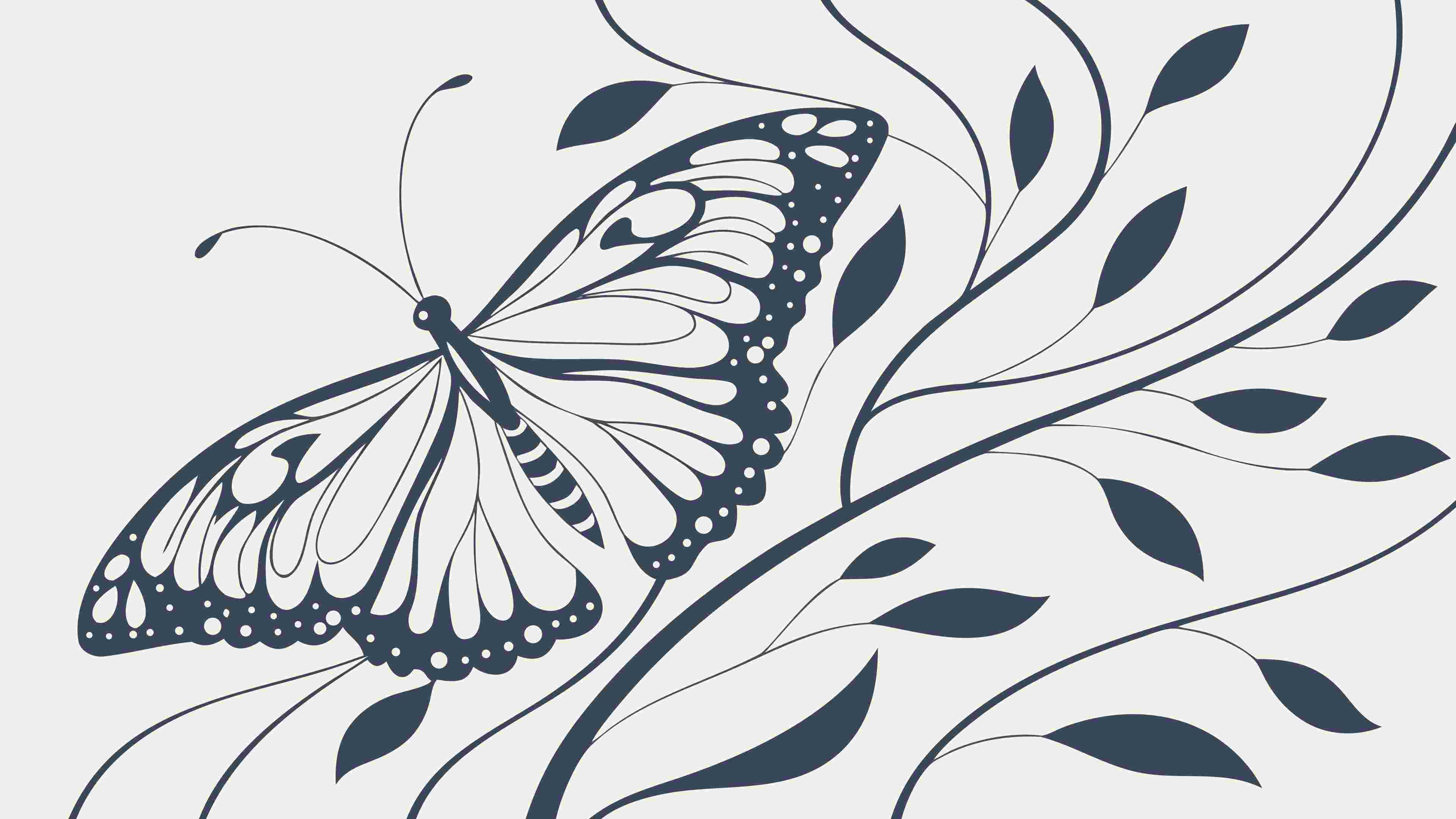 Butterfly on Swirling Leaves, Artistic Nature Motif Vector Art, vector design Generative AI