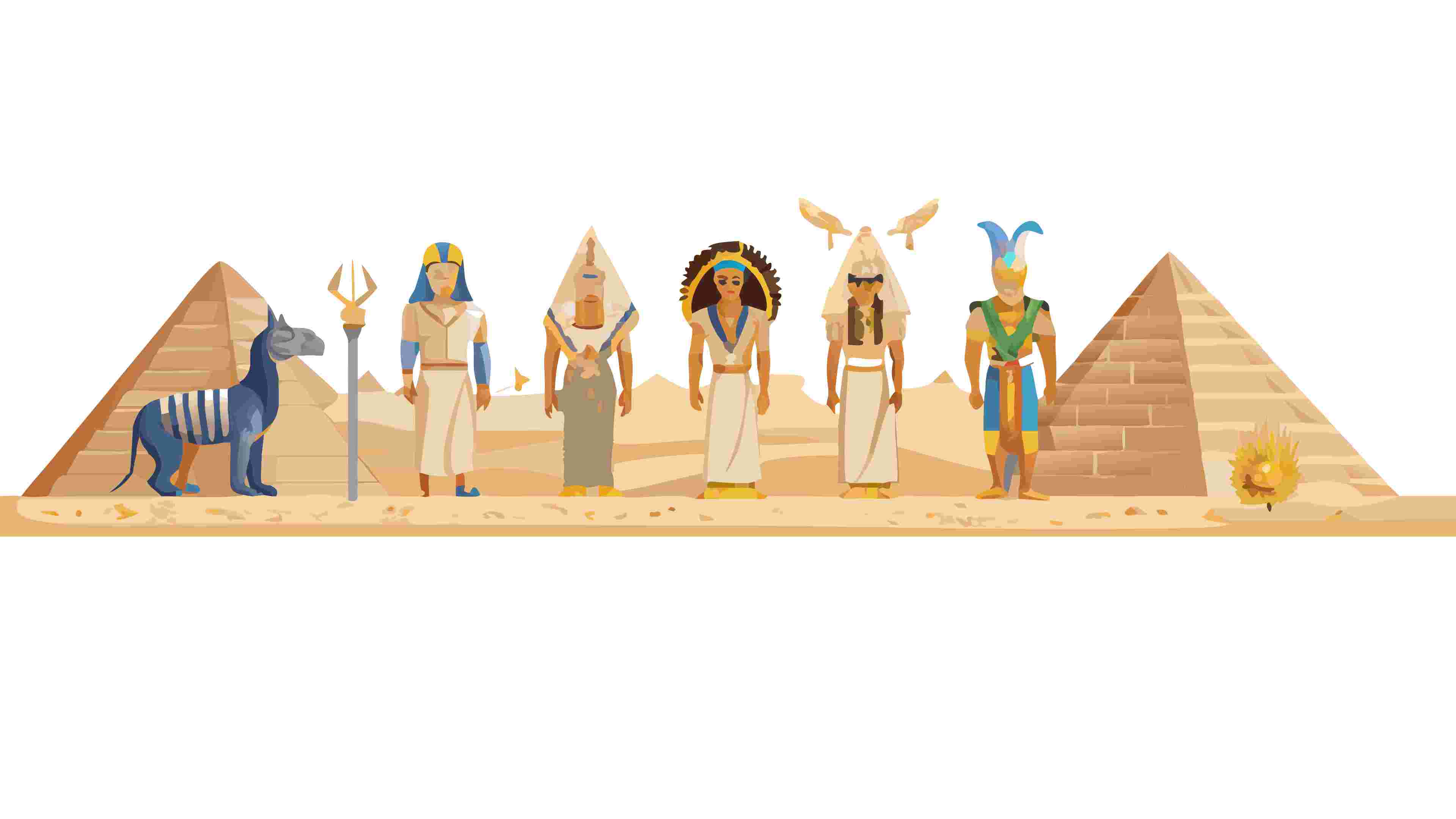 Classic Egyptian Landscape Border with Pyramids and Camels, vector design Generative AI