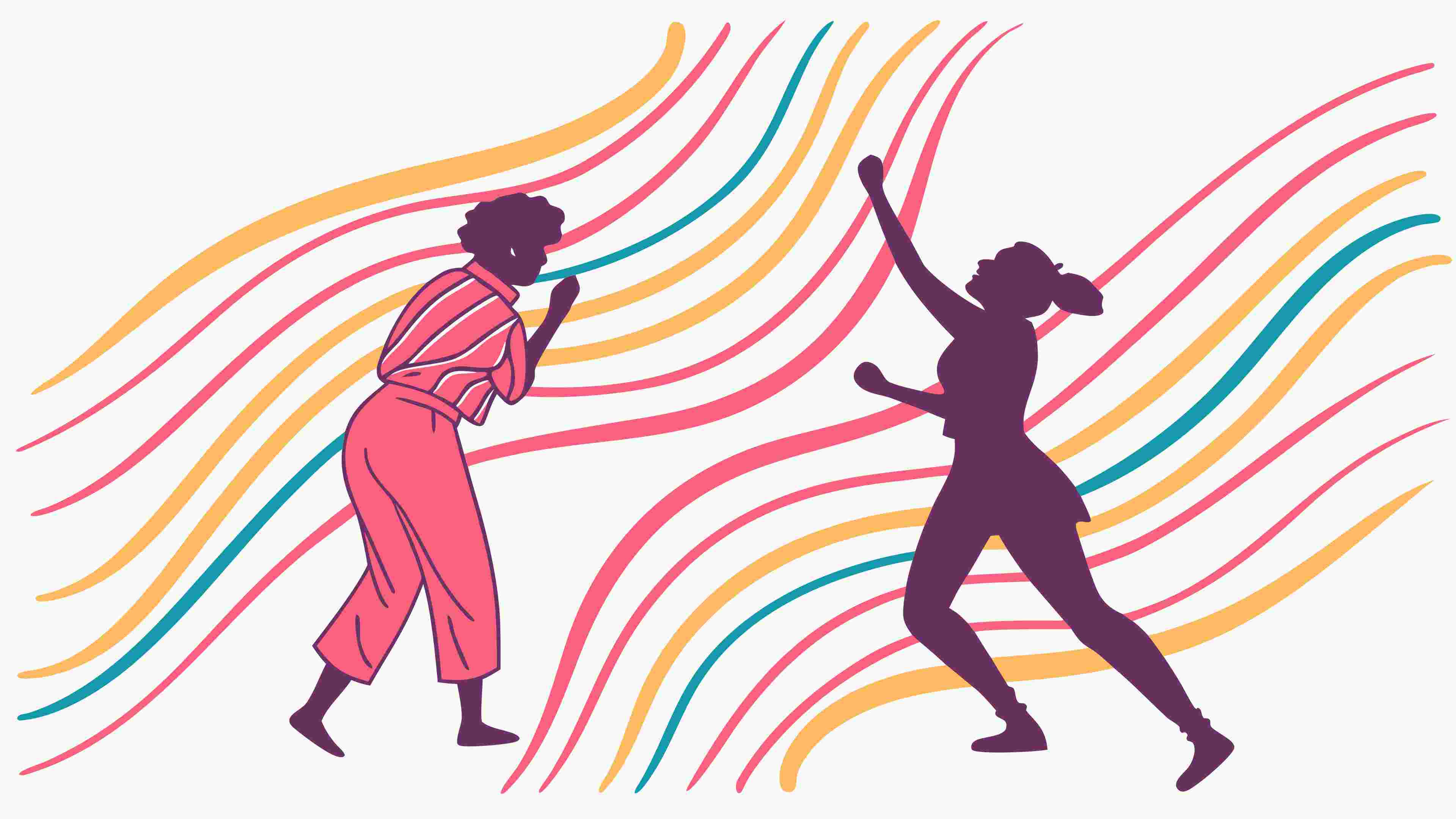 Dancing Silhouettes with Colorful Wavy Lines, vector design Generative AI