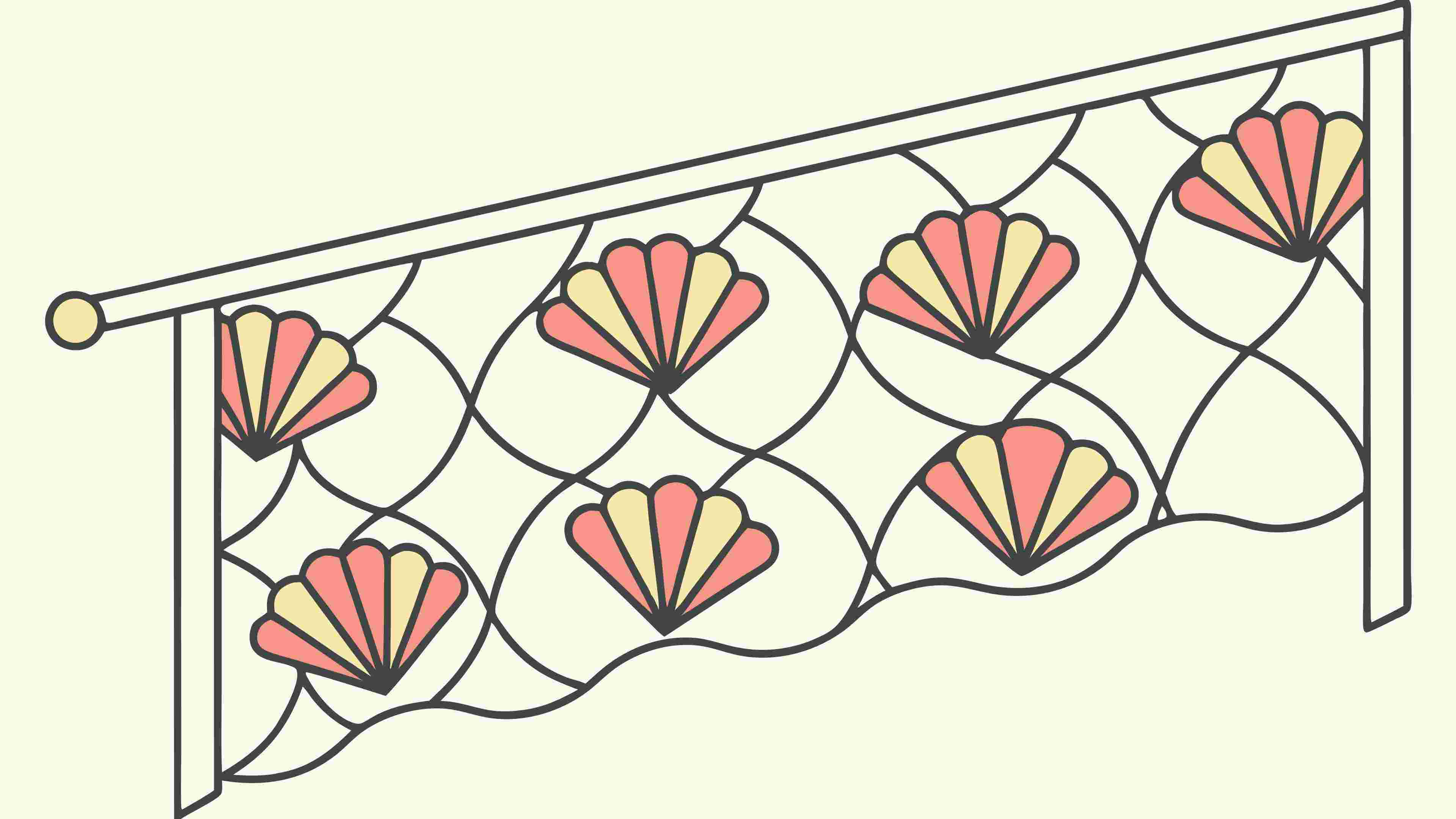 A decorative vector illustration of a screen or divider adorned with a repeating geometric fan or shell pattern. This graphic is perfect for interior design concepts, architectural elements, or ornamental backgrounds. It conveys sophistication, symmetry, and artistic detail, suitable for projects that aim for a refined and visually pleasing decorative accent. vector design Generative AI