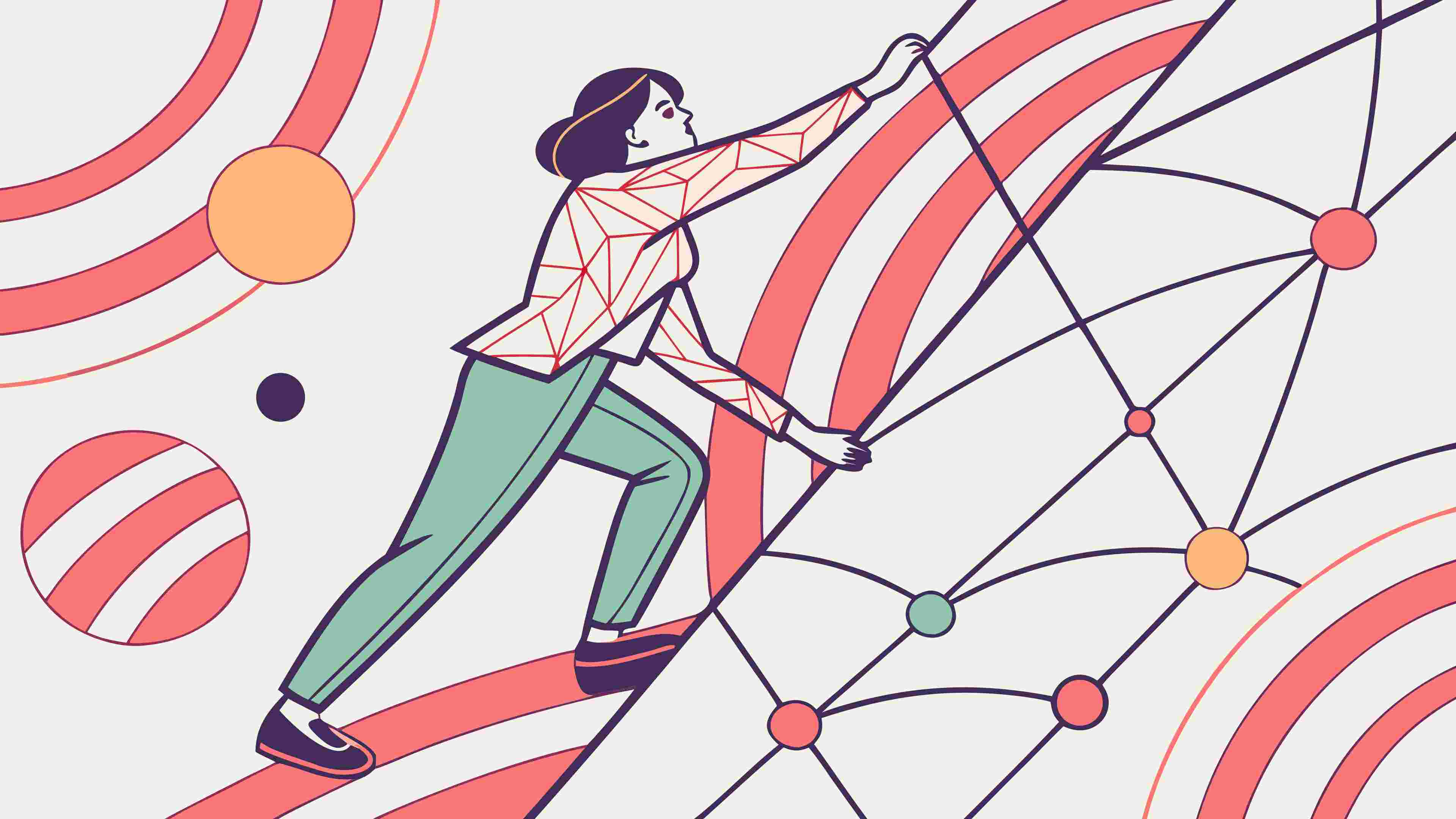 Dynamic Figure Climbing Abstract Digital Network, vector design Generative AI
