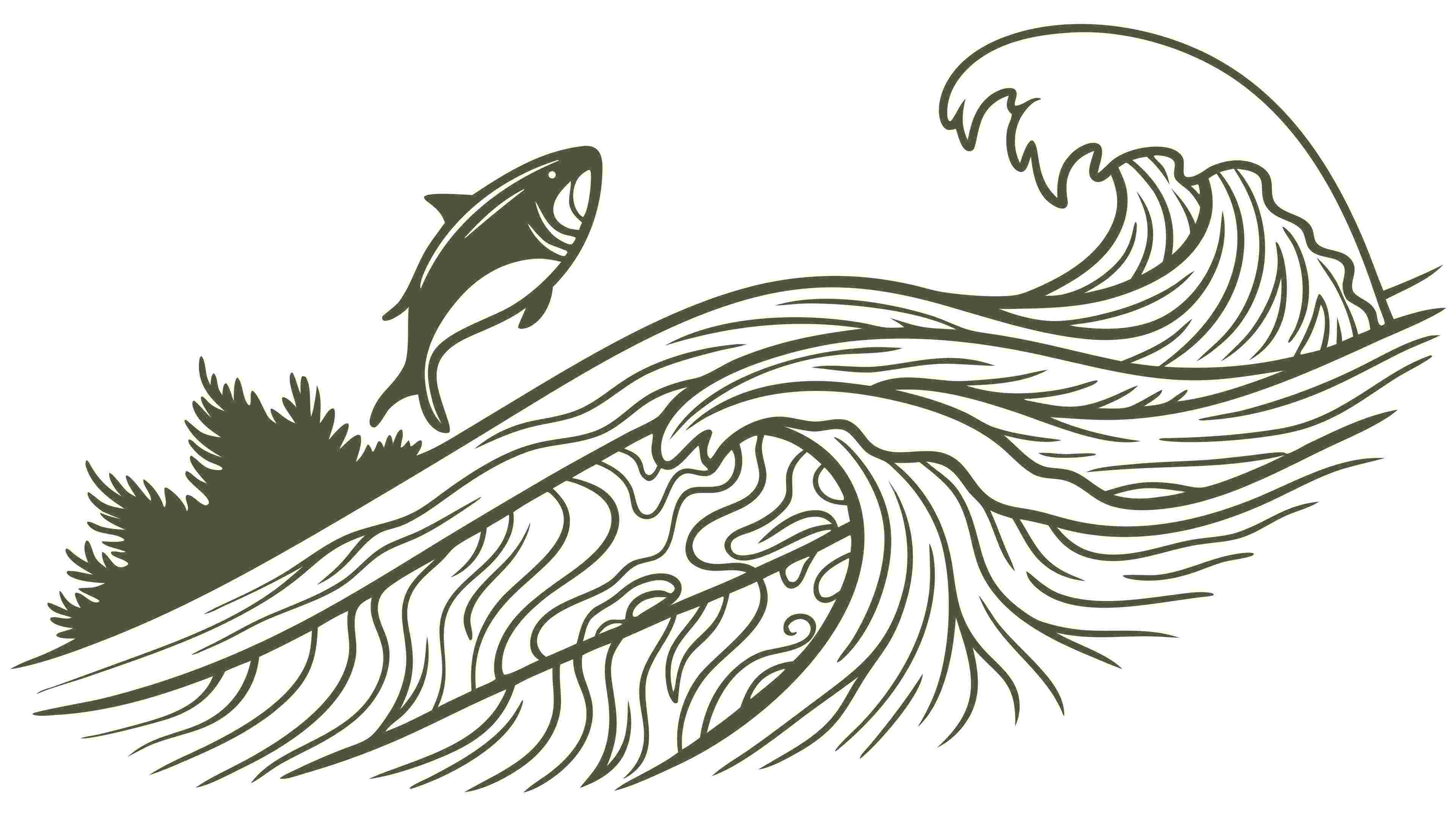 A compelling vector illustration capturing a fish dynamically leaping from a powerful ocean wave, symbolizing vitality and the wild marine environment. This vibrant graphic is perfect for fishing brands, environmental themes, or aquatic adventure content, vector design Generative AI