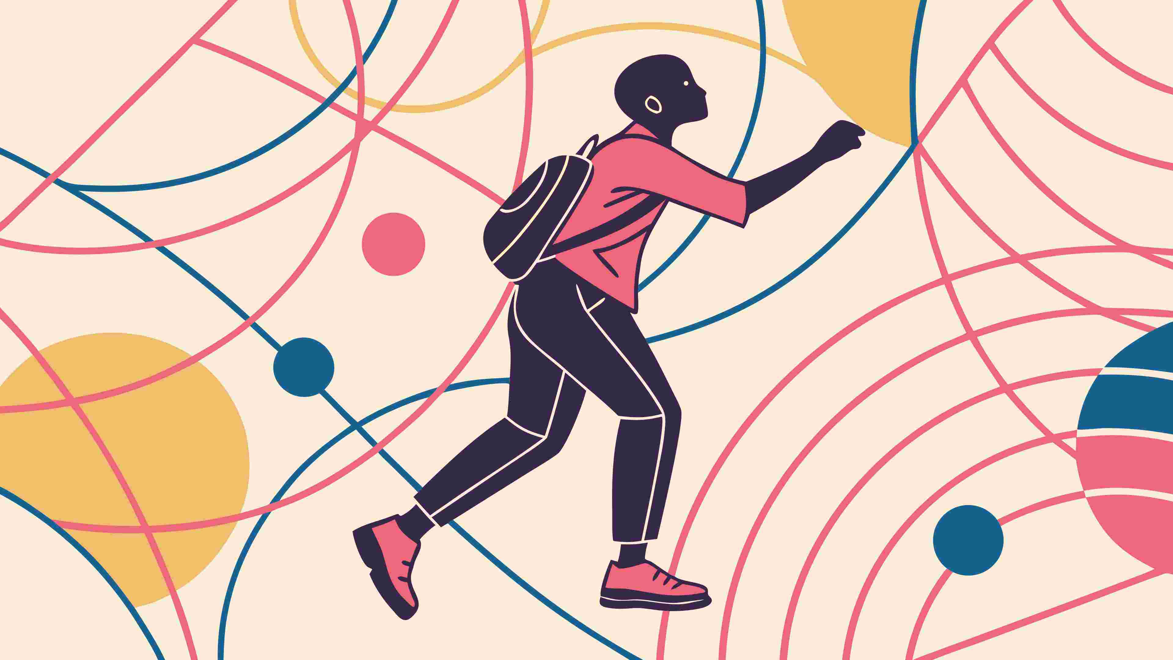 A dynamic vector illustration of a runner in full stride, set against an abstract background of interconnected circles and lines. This graphic effectively conveys speed, athleticism, and a sense of forward motion, ideal for sports, fitness, or healthy lifestyle brands, vector design Generative AI