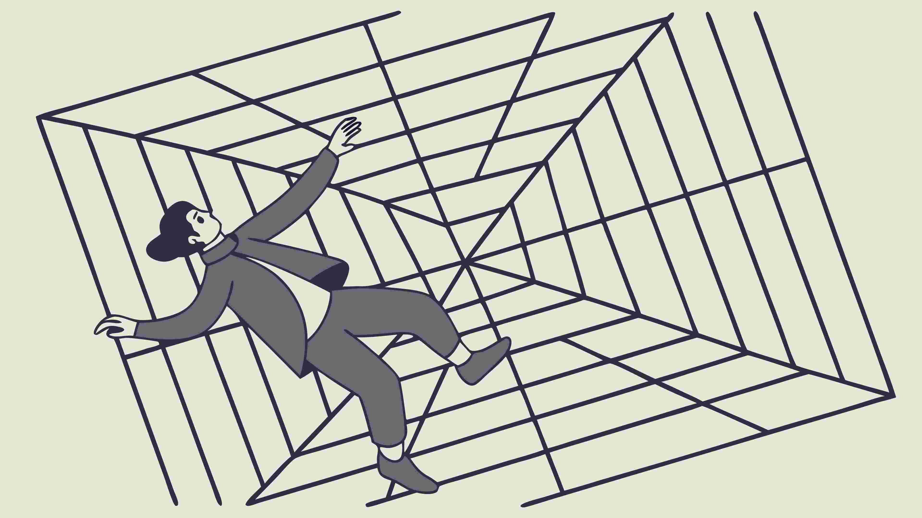 A powerful vector illustration showing the silhouette of a man dynamically running through a complex, swirling maze-like pattern. This abstract design is perfect for themes of challenge, progress, navigation, or mental puzzles. The energetic pose combined with the intricate background creates a compelling visual metaphor for overcoming obstacles, vector design Generative AI