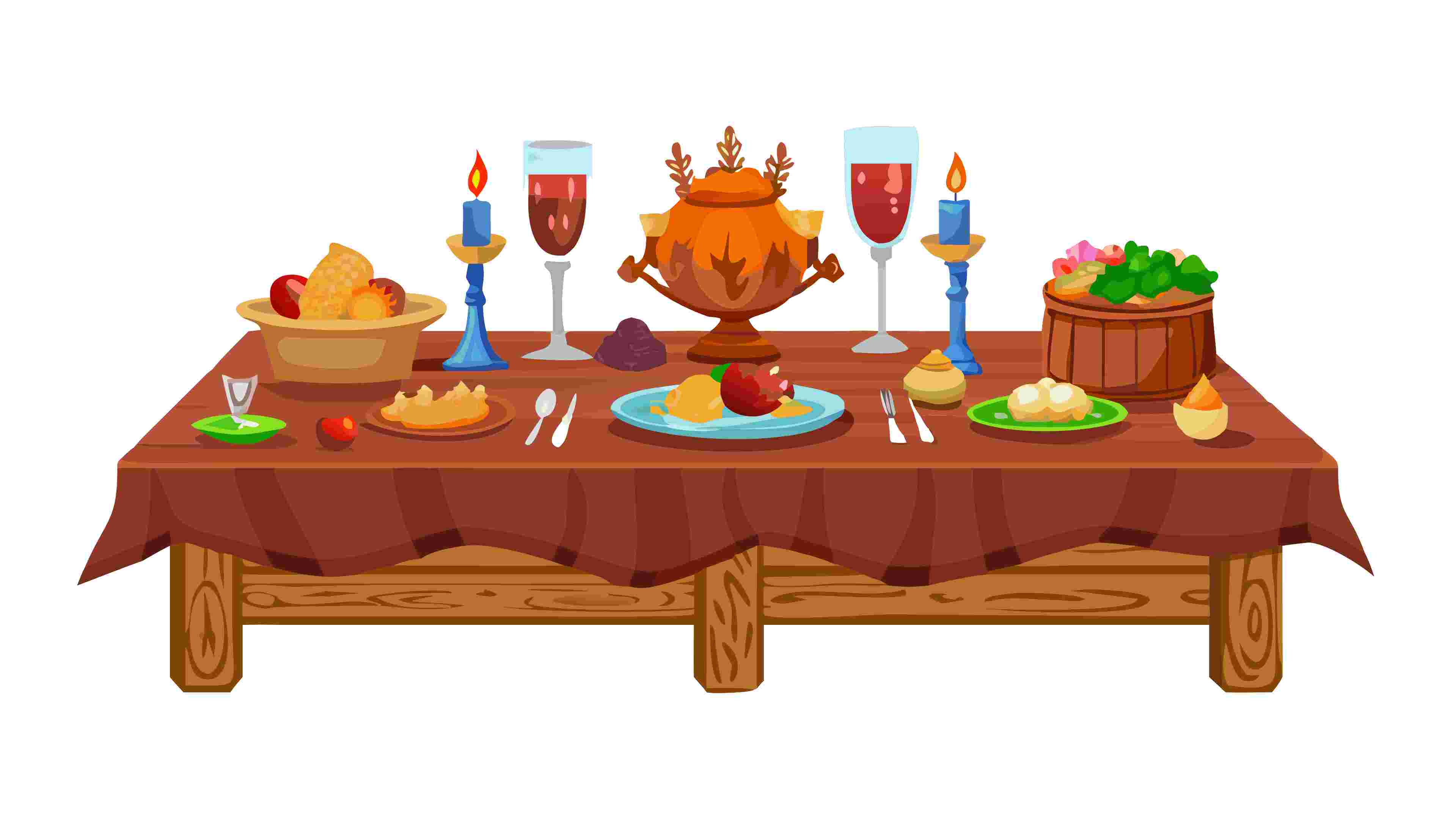 Elegant Dinner Table with Roasted Fish and Fruit Display, vector design Generative AI