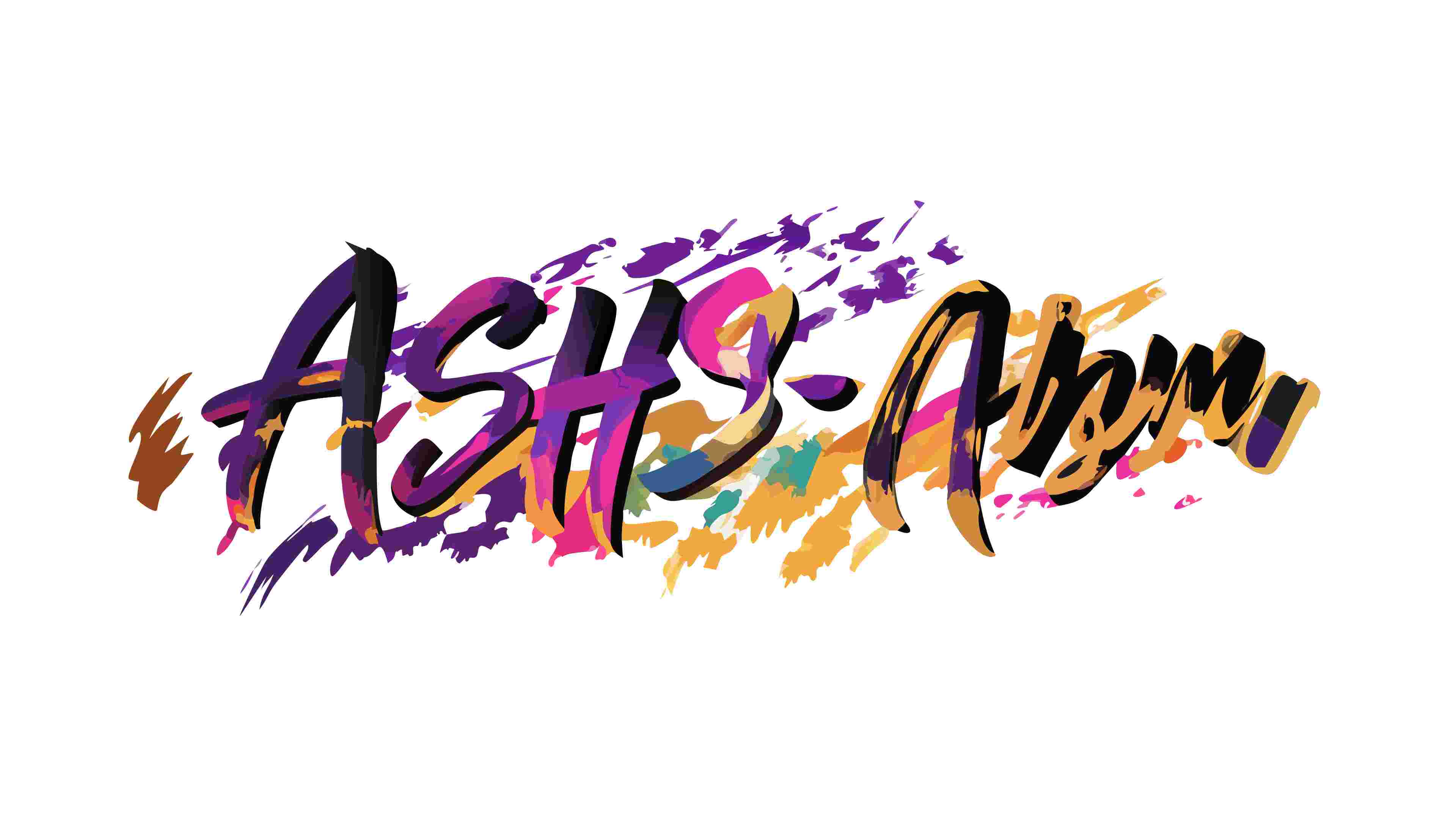 A lively vector text art illustration spelling ASH-A with an energetic and abstract style, incorporating vibrant paint splashes. Perfect for music, entertainment, or youth-oriented designs, conveying a sense of fun and modern creativity, vector design Generative AI.
