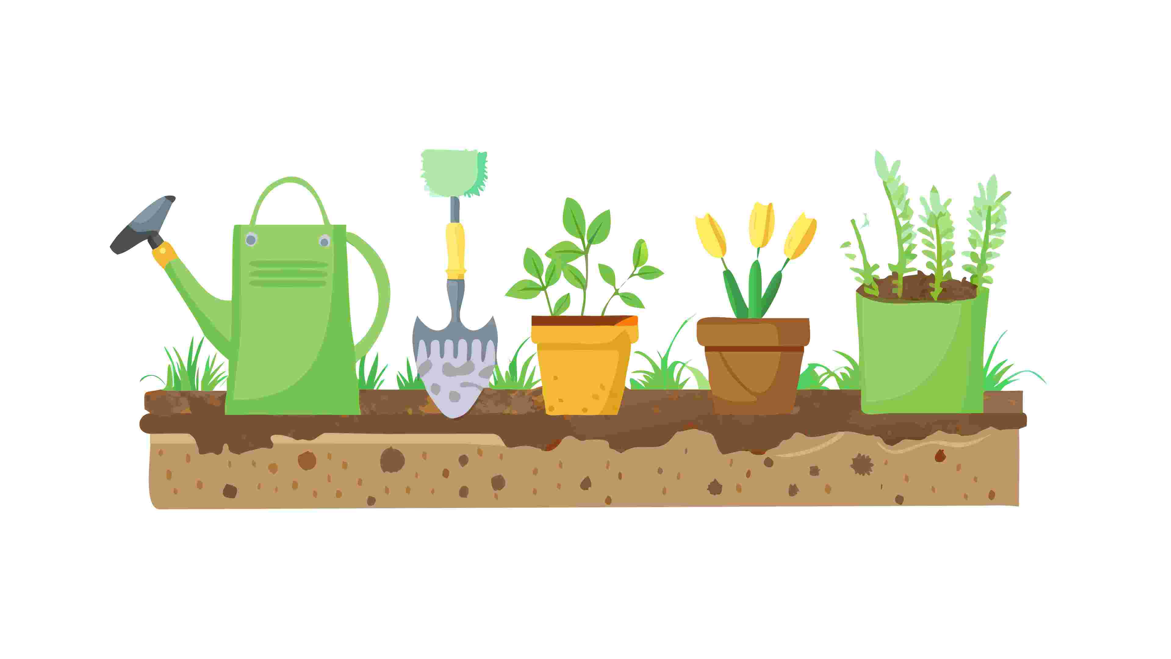 A cheerful vector illustration showcasing essential gardening tools, including a watering can, trowel, and rake, alongside several vibrant potted plants. This inviting design is perfect for spring and summer promotions, gardening guides, landscaping services, or home and garden publications, embodying the joy and activity of nurturing a flourishing garden and connecting with nature, vector design Generative AI.