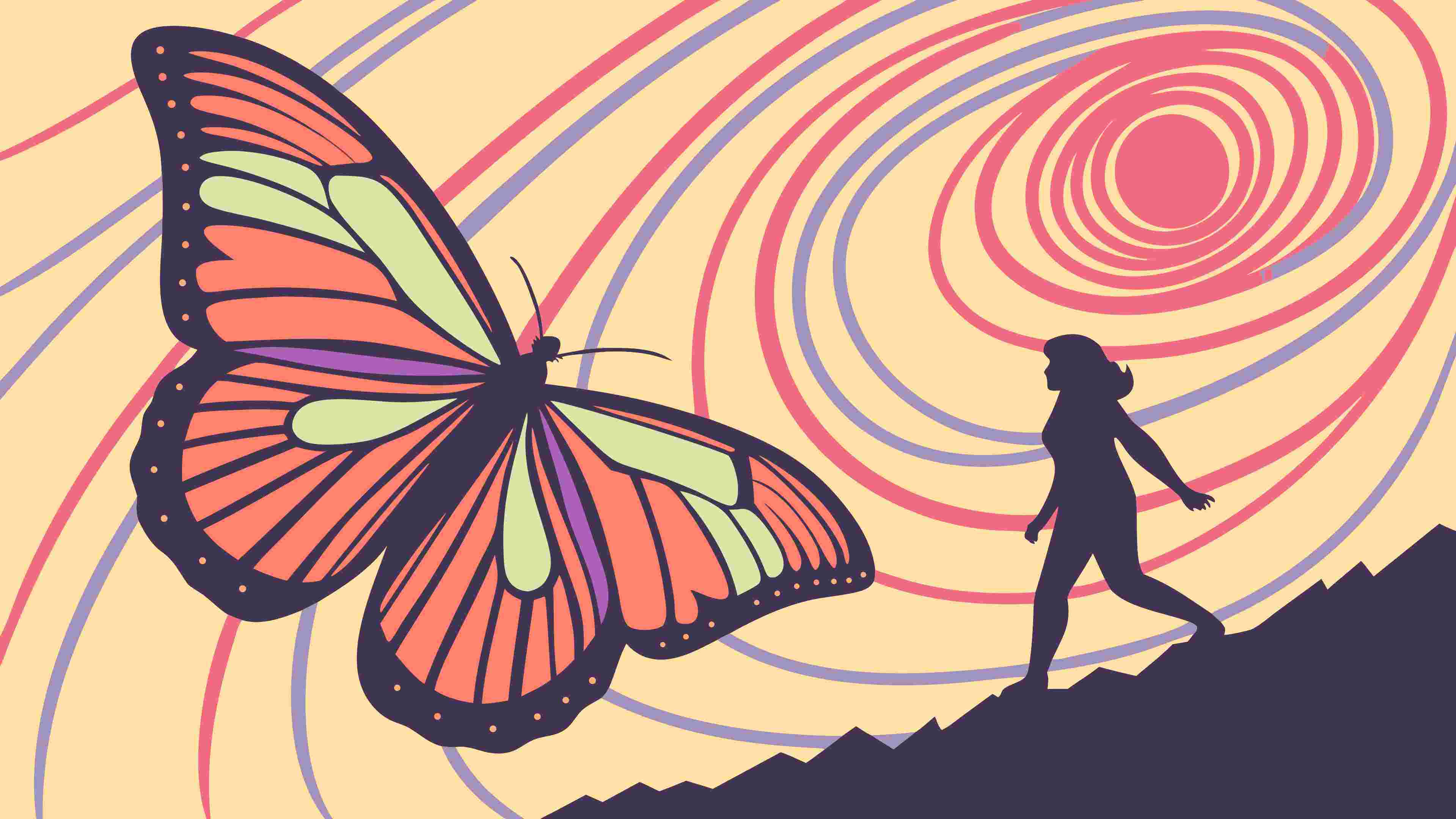 Fantasy Landscape with Butterfly and Small Figure, vector design Generative AI
