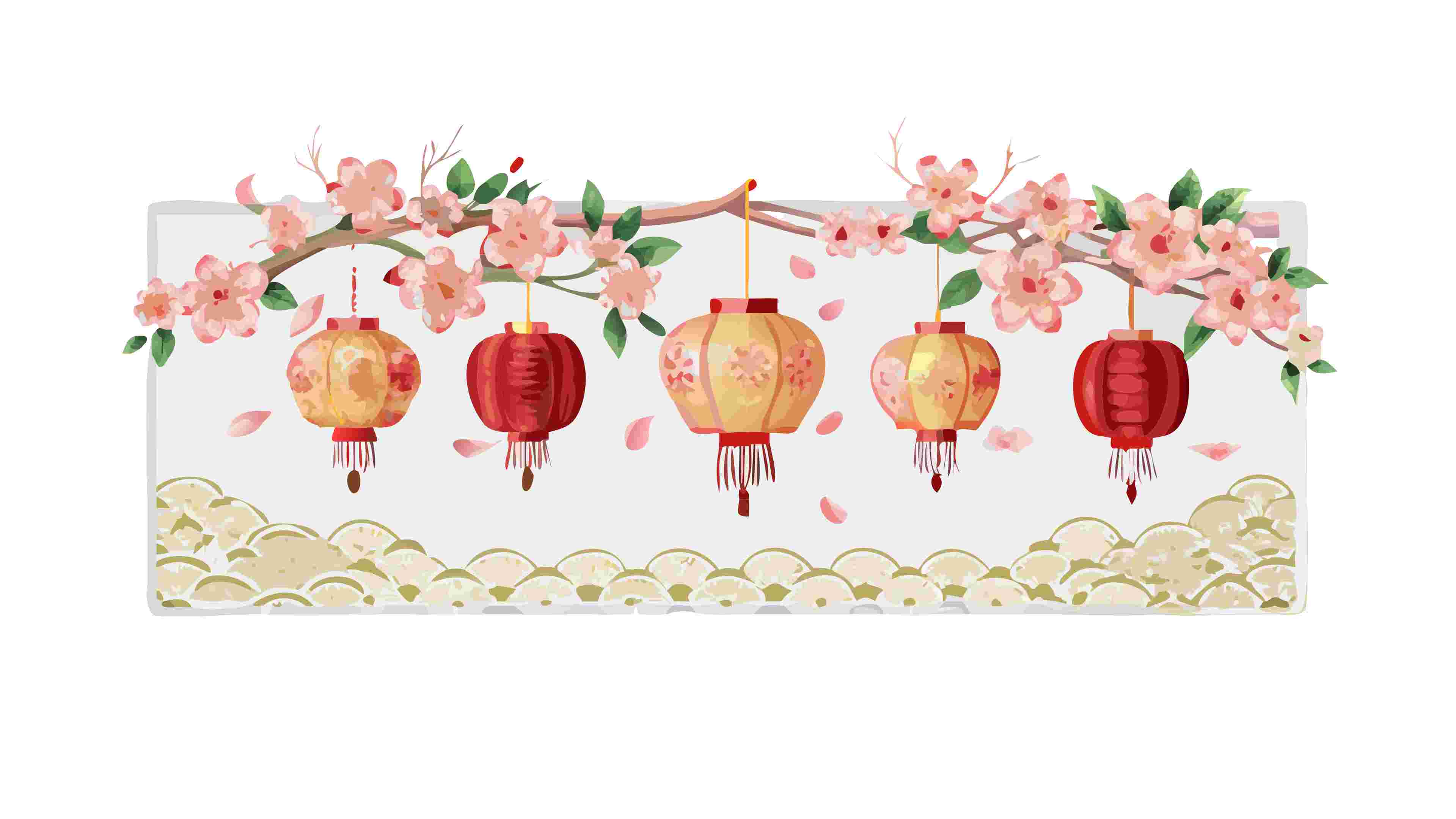 Festive Chinese Lanterns & Cherry Blossom Vector Border, vector design Generative AI