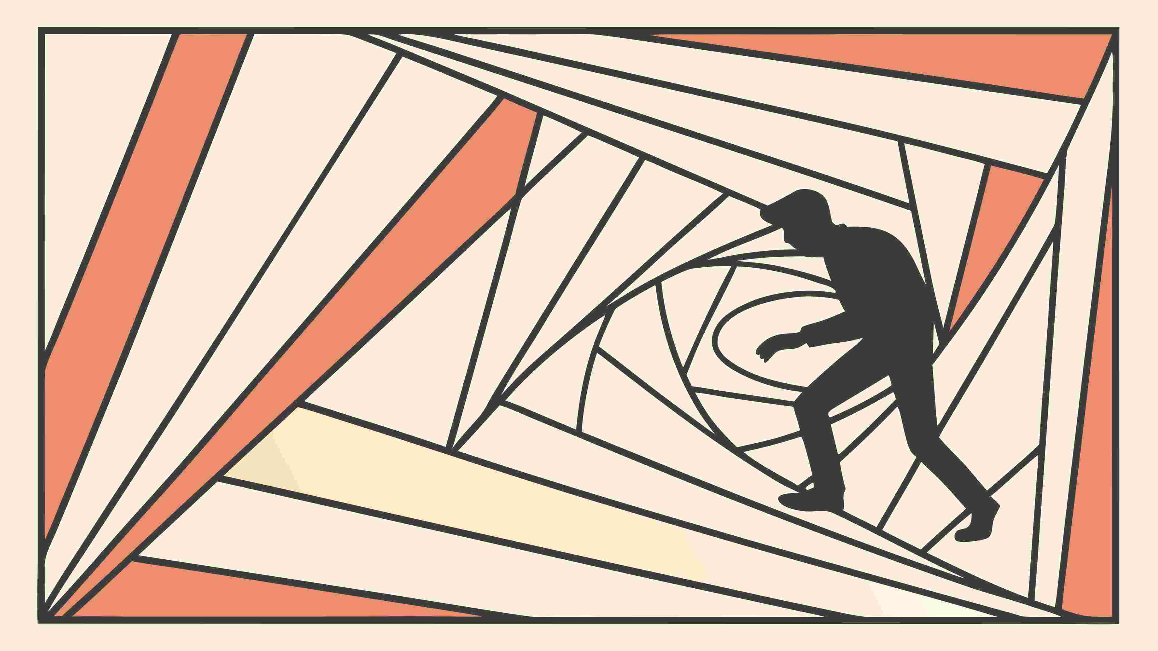 An intriguing vector illustration depicting a figure moving within a swirling abstract geometric vortex, symbolizing a journey or transformation. This dynamic design is perfect for conceptual art, personal growth themes, digital backgrounds, or sci-fi projects. Its fluid lines and sense of motion create a captivating and immersive visual, ideal for conveying introspection or an evolving path, vector design Generative AI.