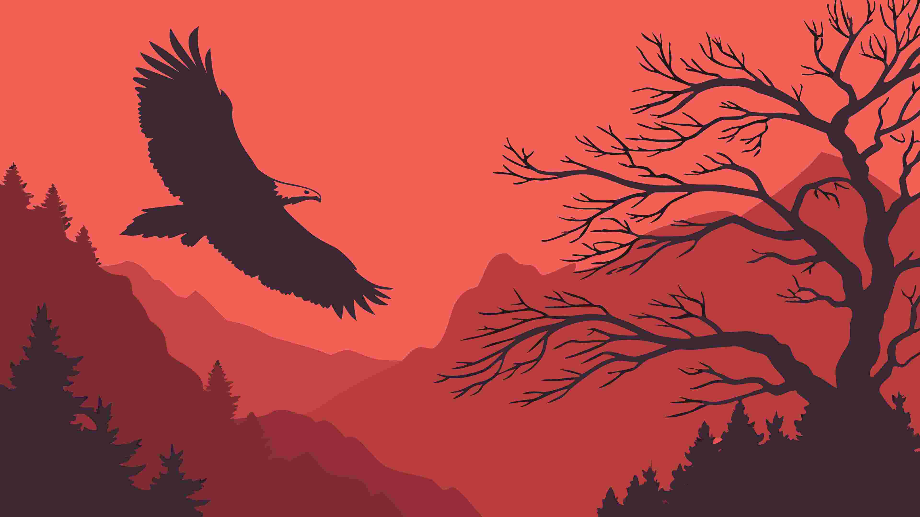 Flying Eagle Silhouette Over Barren Landscape, vector design Generative AI
