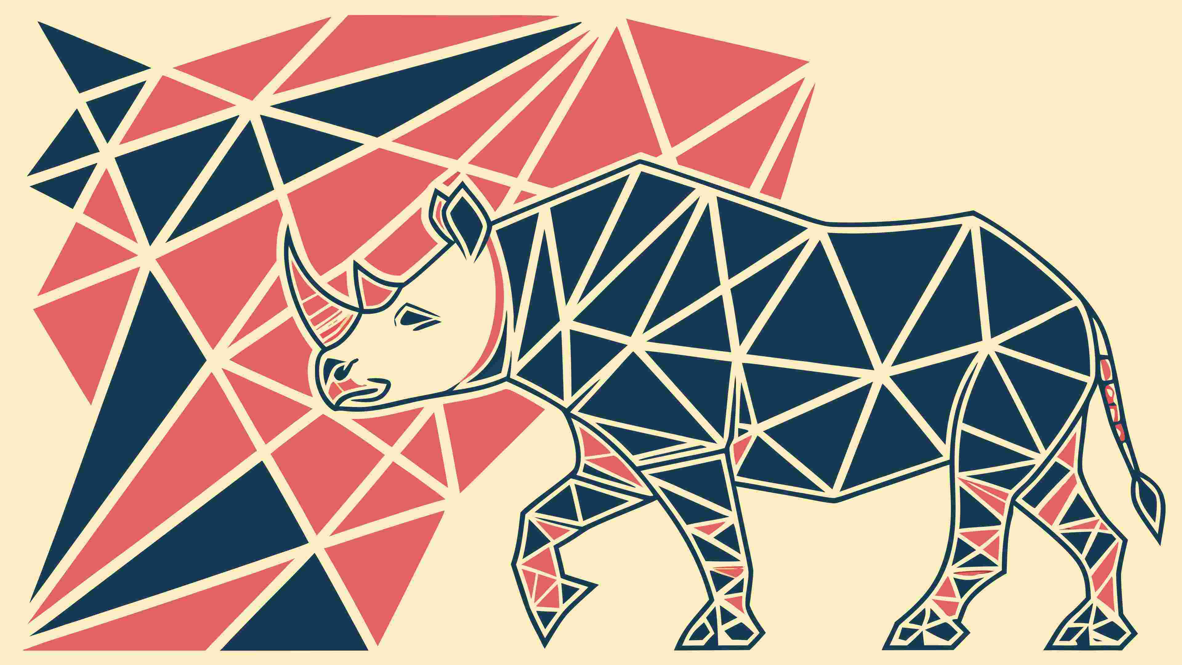 A powerful vector illustration of a geometric rhinoceros, rendered in a striking low-poly style with colorful facets. This dynamic design is perfect for wildlife conservation, modern art, bold branding, or abstract animal themes. Its sharp angles and distinctive form create a captivating and contemporary visual, ideal for conveying strength, resilience, or a unique artistic perspective, vector design Generative AI.