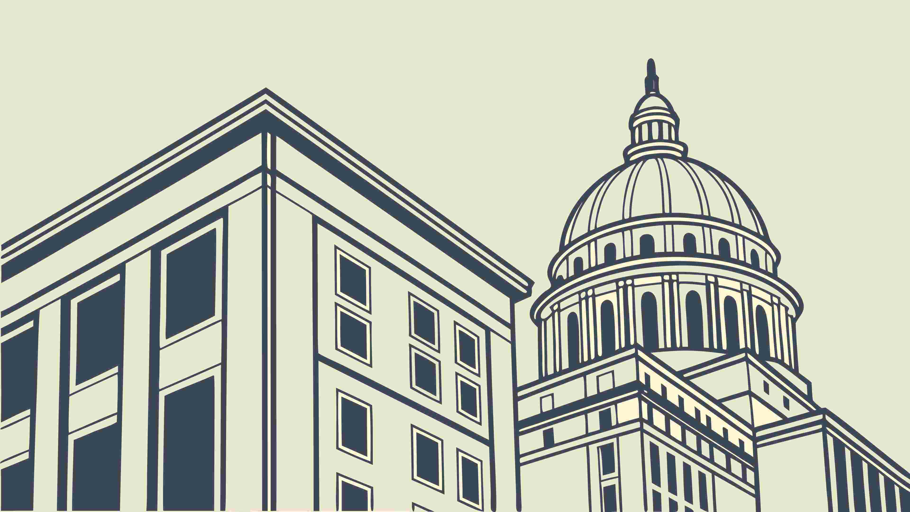 A dignified vector illustration of a grand classical government building, reminiscent of a capitol, with impressive columns and a dome. This majestic design is suitable for historical, political, or institutional themes, vector design Generative AI