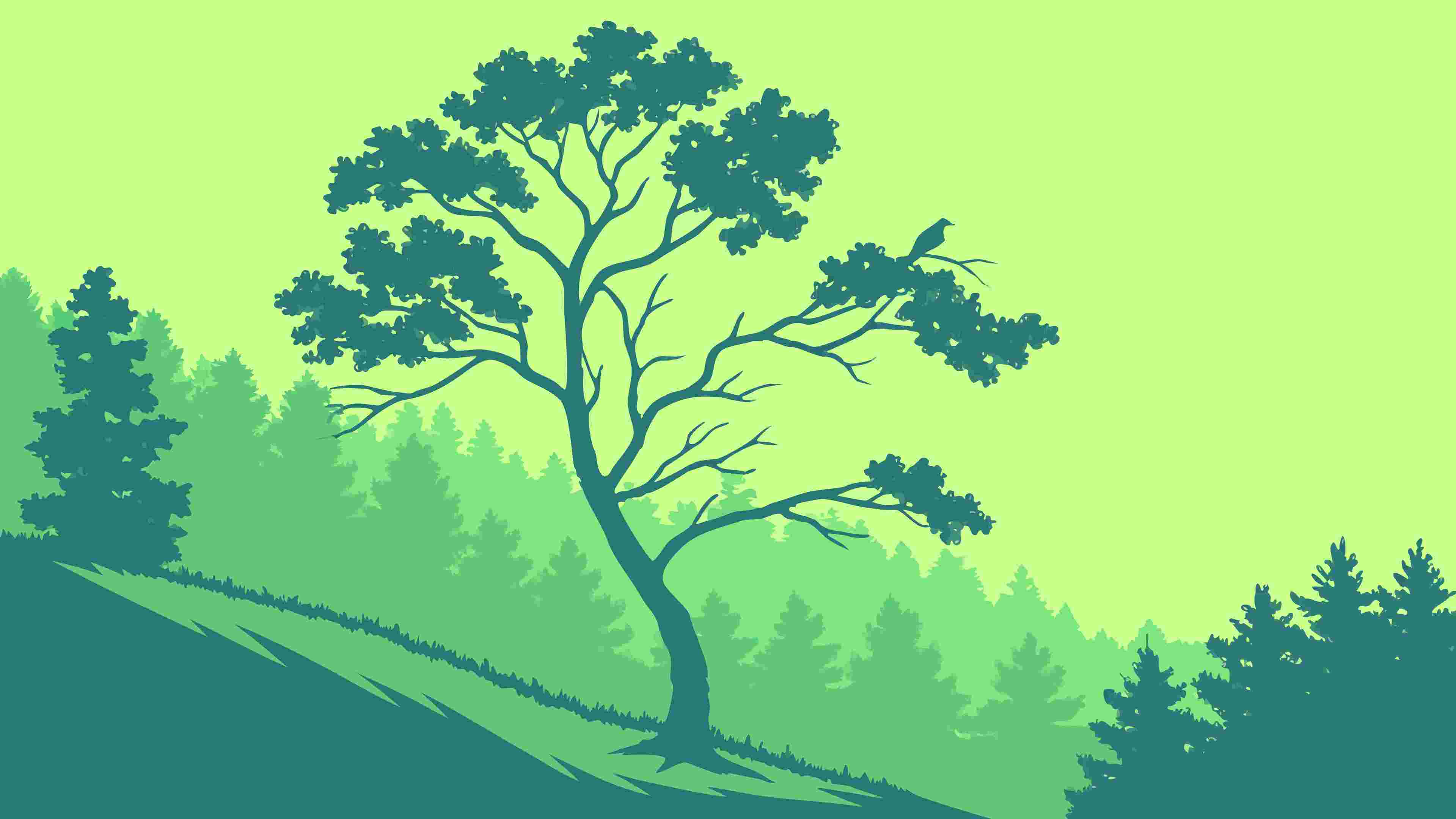 Green Forest Landscape with Unique Tree Silhouette, vector design Generative AI