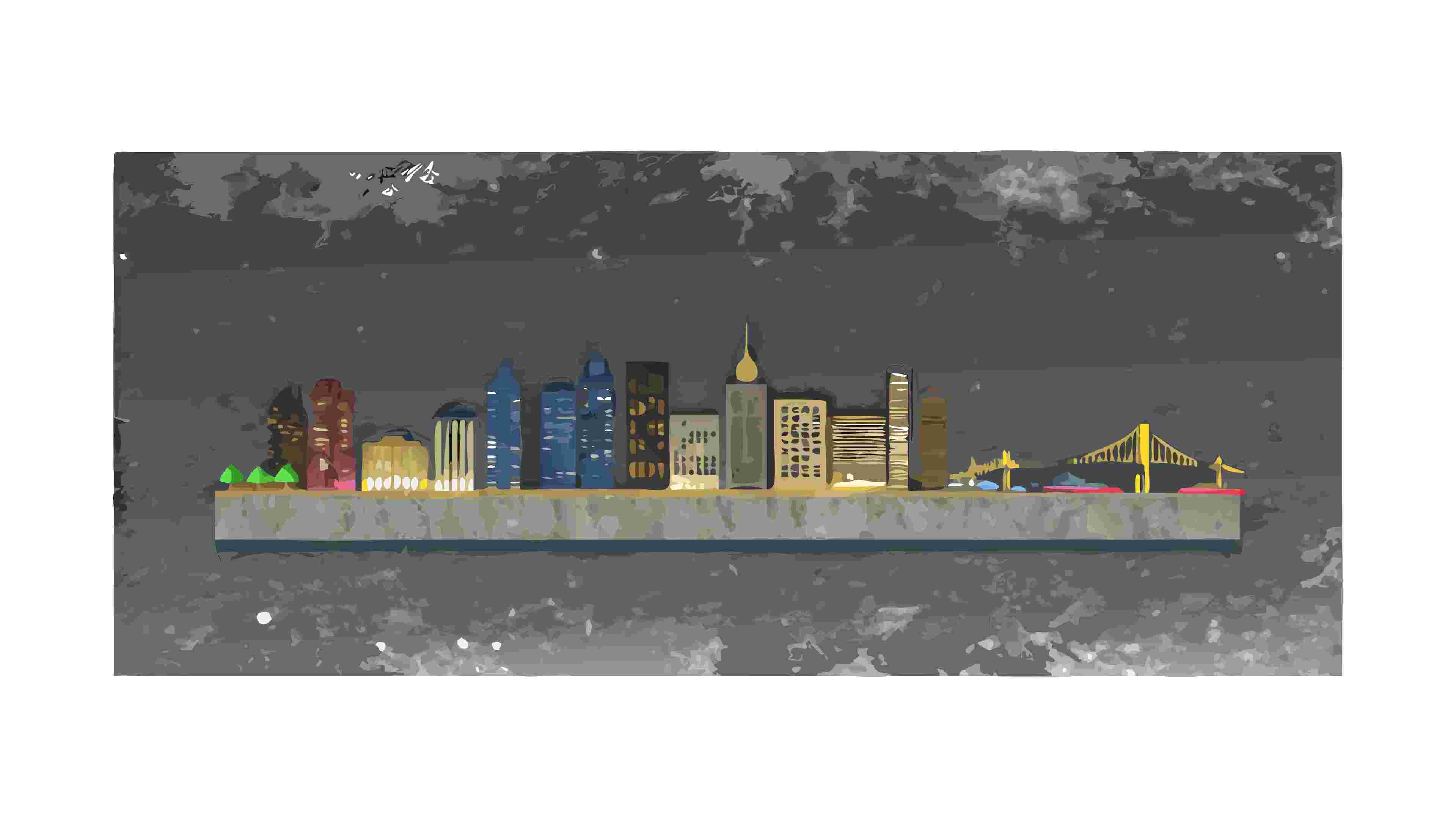 Grungy Cityscape Silhouette Border with Textured Sky, vector design Generative AI