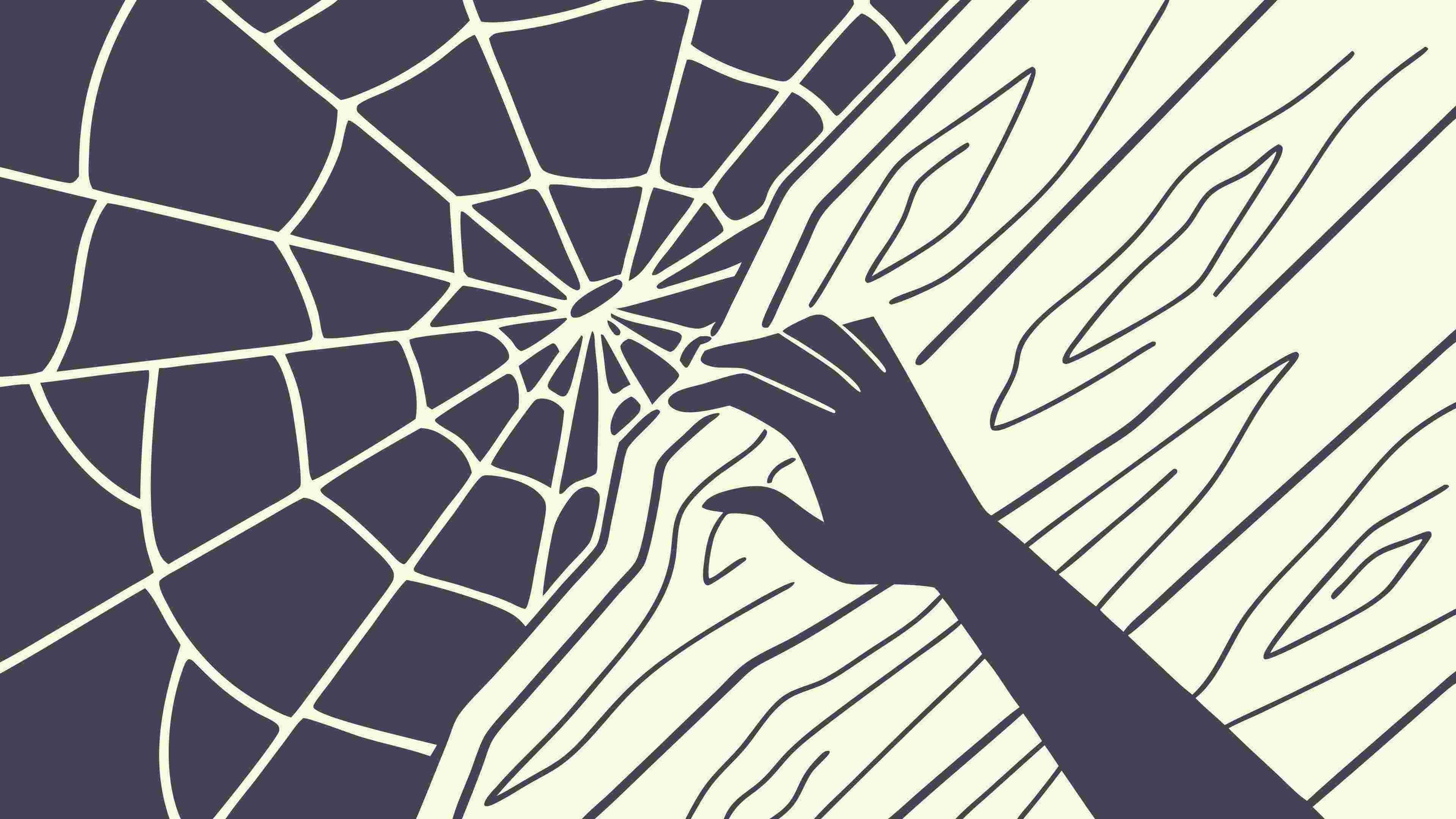 A chilling vector illustration depicting a hand seemingly trapped within a textured spiderweb. This ominous and artistic concept is perfect for Halloween themes, suspenseful narratives, or symbolic designs related to being caught or entangled, vector design Generative AI