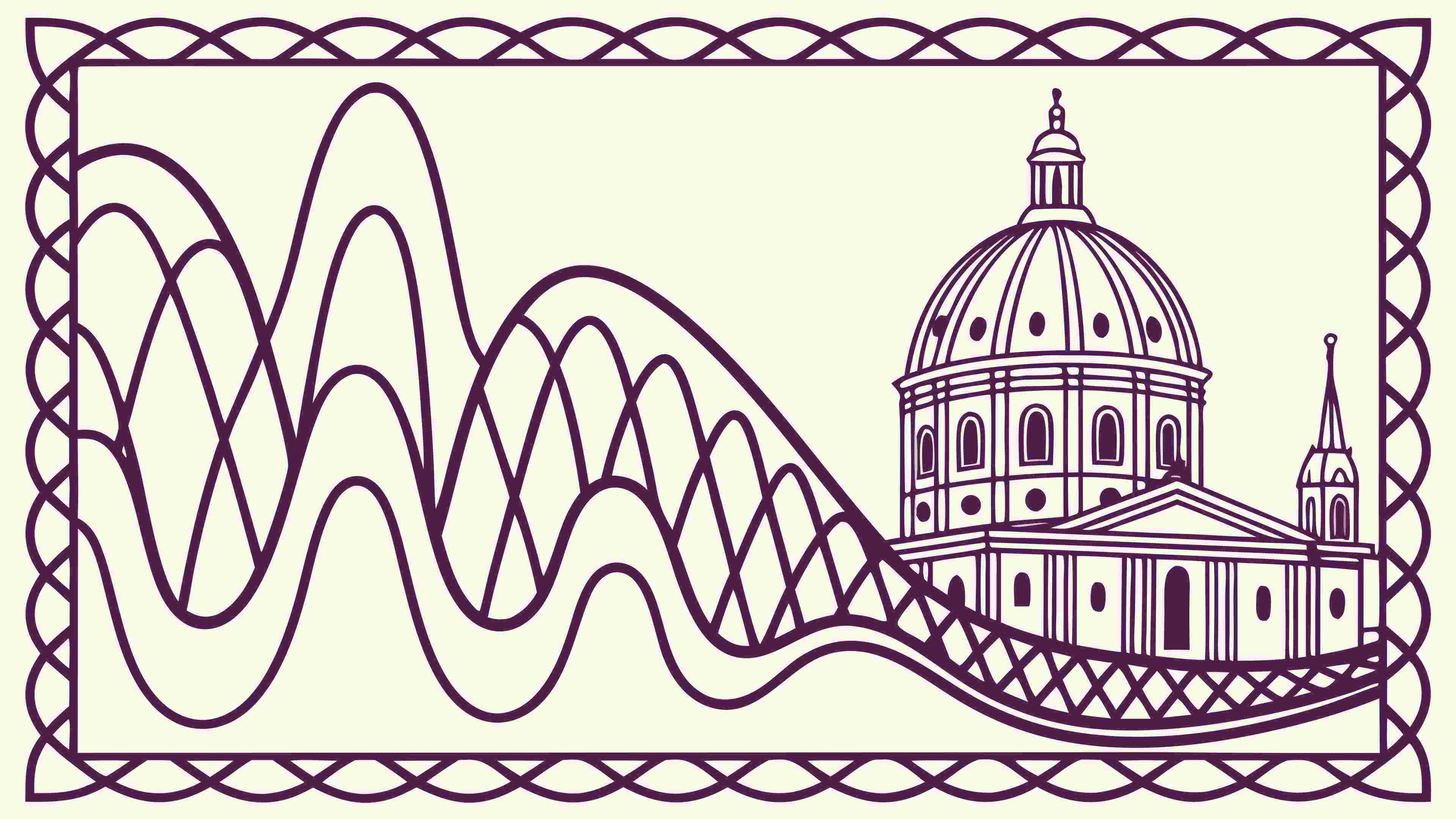 An elegant vector frame featuring a detailed illustration of a historic European cathedral building, reminiscent of classical architecture. This sophisticated graphic is perfect for travel guides, historical documents, or refined decorative elements, vector design Generative AI