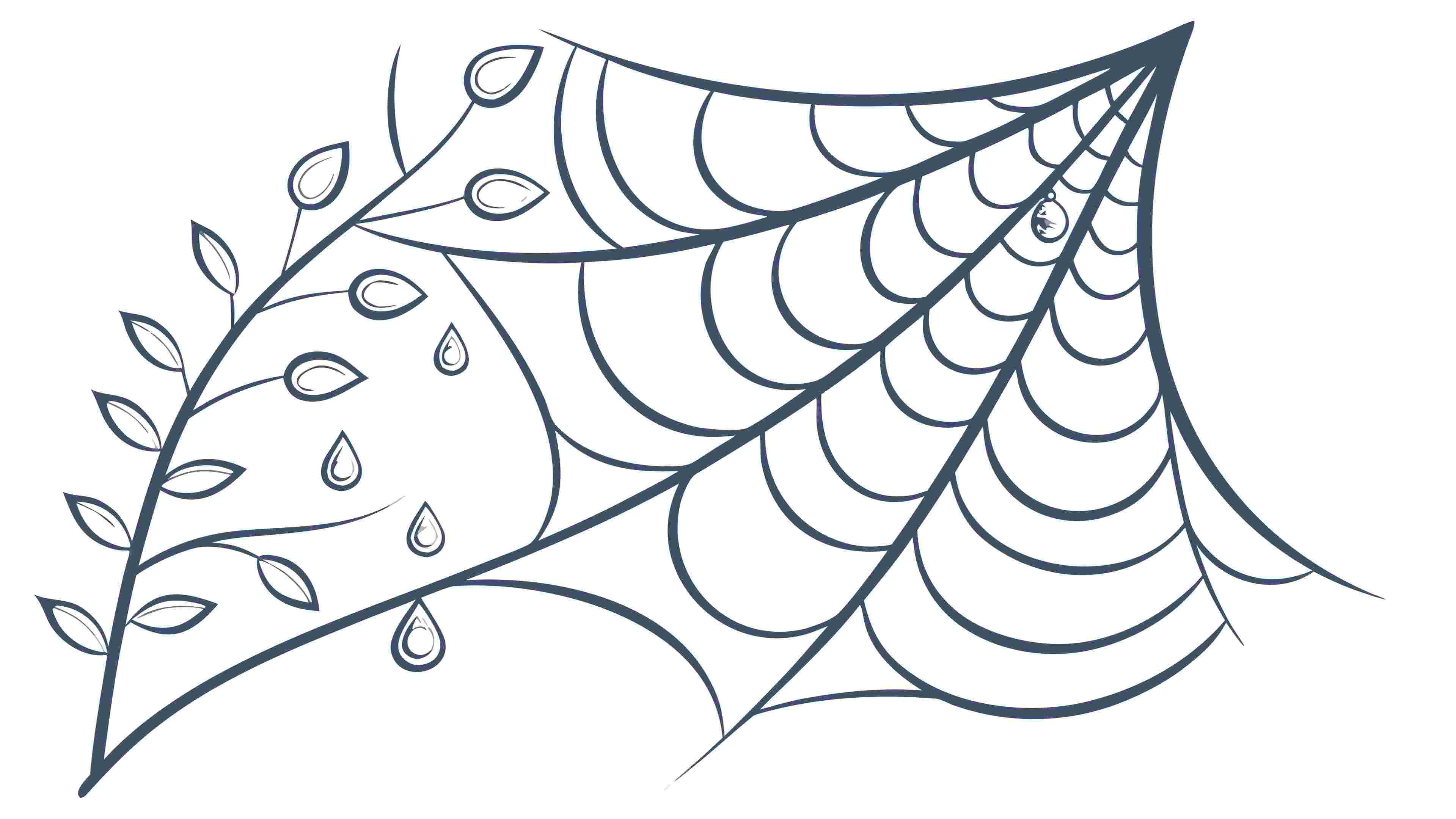 A delicate vector illustration of an intricate spiderweb adorned with small dewdrops and a few leaves. Ideal for nature themes, autumn concepts, magical designs, or decorative elements. The fine details and serene depiction create an atmospheric and graceful visual, suitable for illustrative and whimsical projects, vector design Generative AI