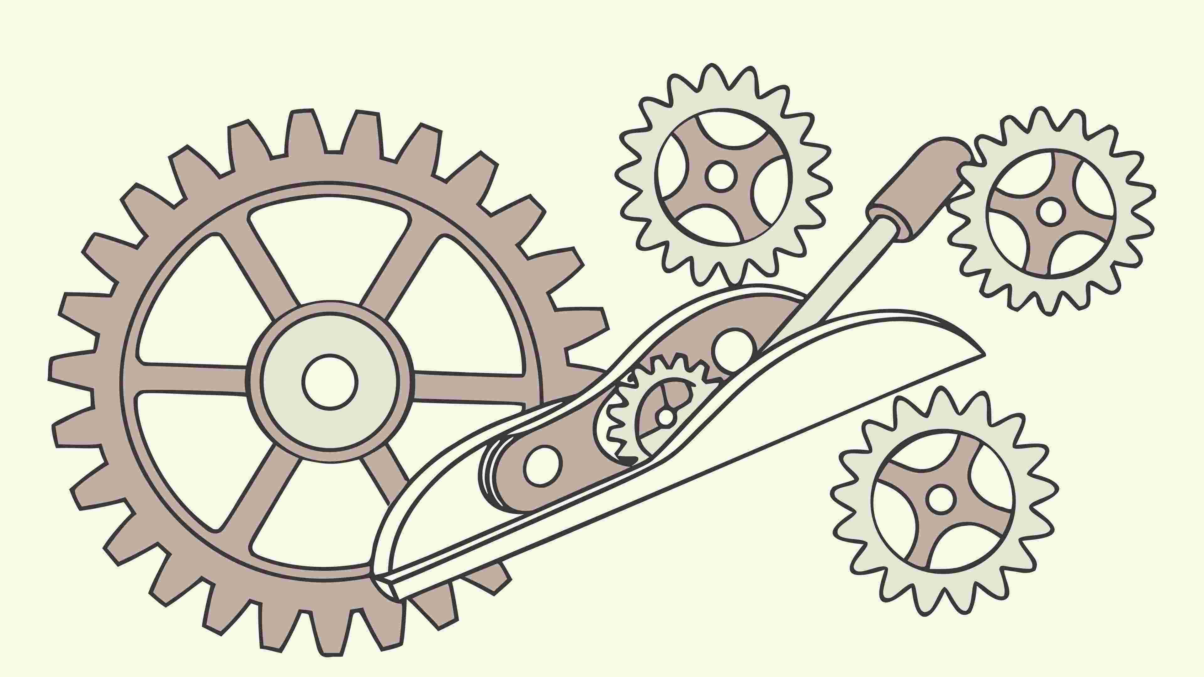 Detailed illustration of an intricate steampunk mechanism featuring various interlocking gears and a lever, all in a vintage, industrial style. Perfect for themes of innovation, engineering, retro-futurism, or mechanical design. High-quality vector art for print or digital, vector design Generative AI