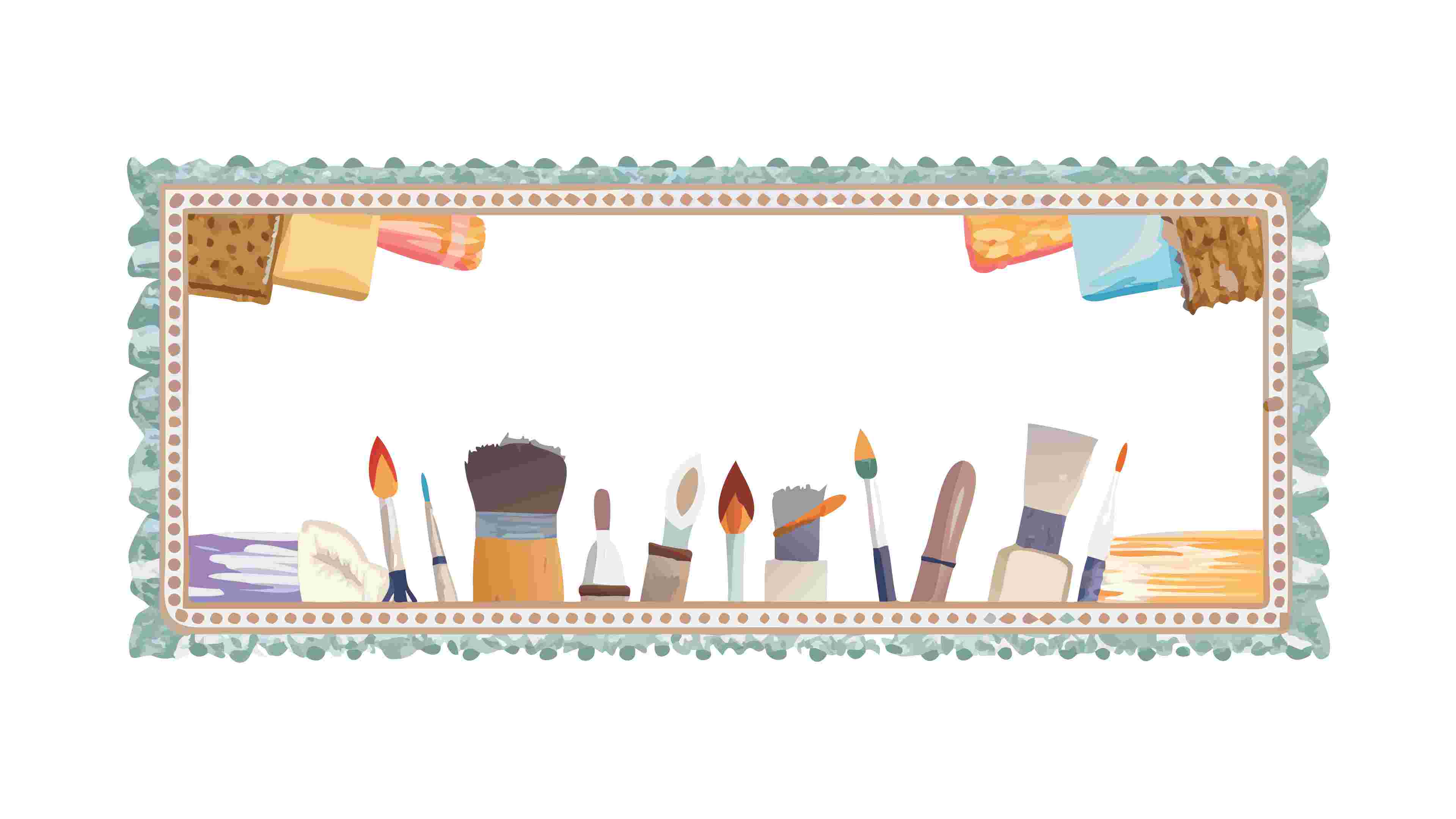 A playful vector border featuring a charming collection of kids' art supplies, including colorful crayons and brushes. This cheerful graphic is ideal for children's education, school projects, or fun artistic themes, vector design Generative AI