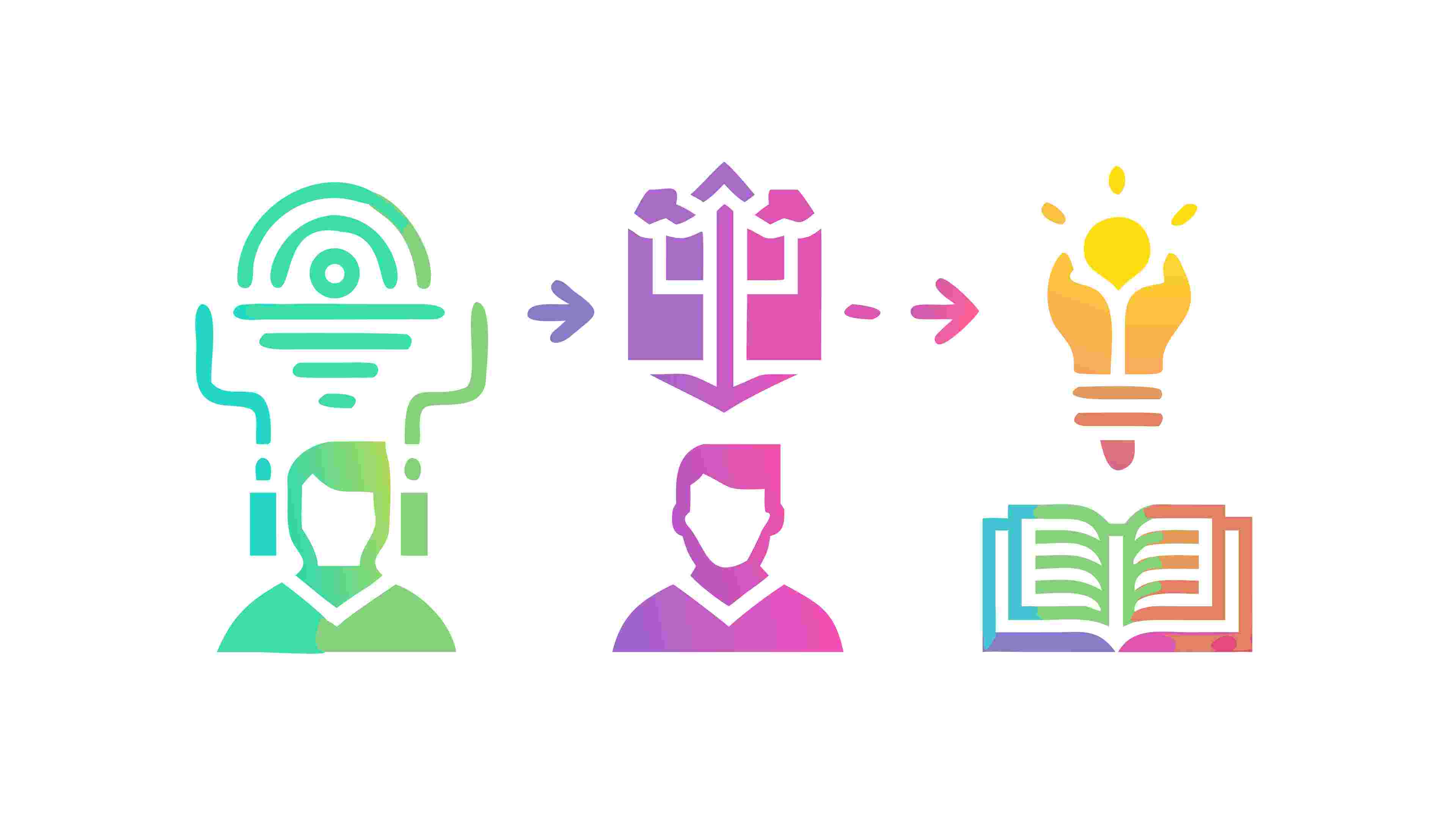 A conceptual vector illustration depicting knowledge transfer and idea exchange between figures, with symbols of lightbulbs and books. This insightful graphic is ideal for education, business training, or collaborative learning initiatives, vector design Generative AI