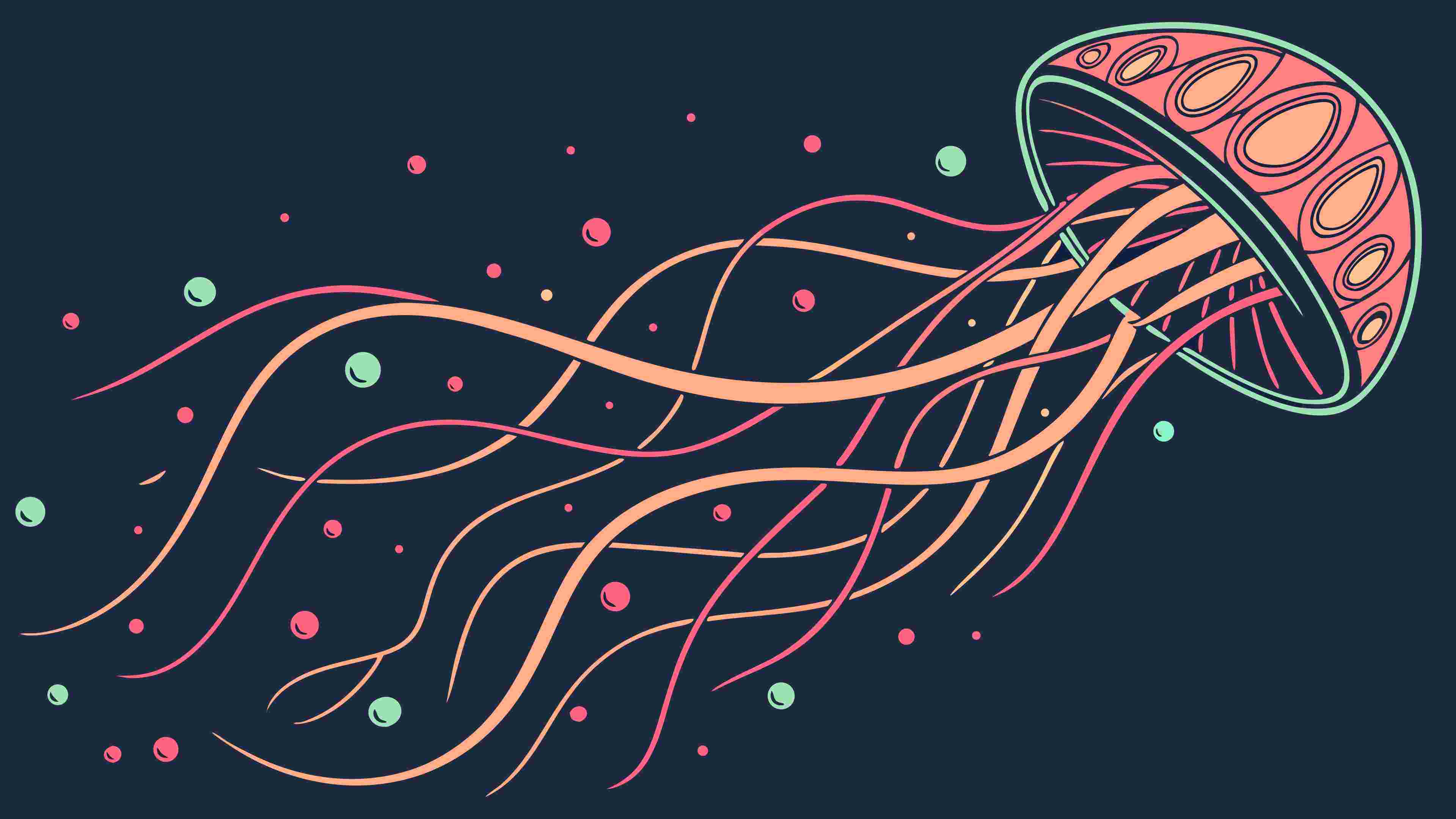 A captivating vector illustration of a luminous pink jellyfish with long, delicate tentacles, floating in a dark abyss. Ideal for marine life, abstract art, mysterious themes, or decorative designs. The ethereal glow and intricate details create a sense of wonder and otherworldly beauty, perfect for captivating and imaginative graphic projects, vector design Generative AI