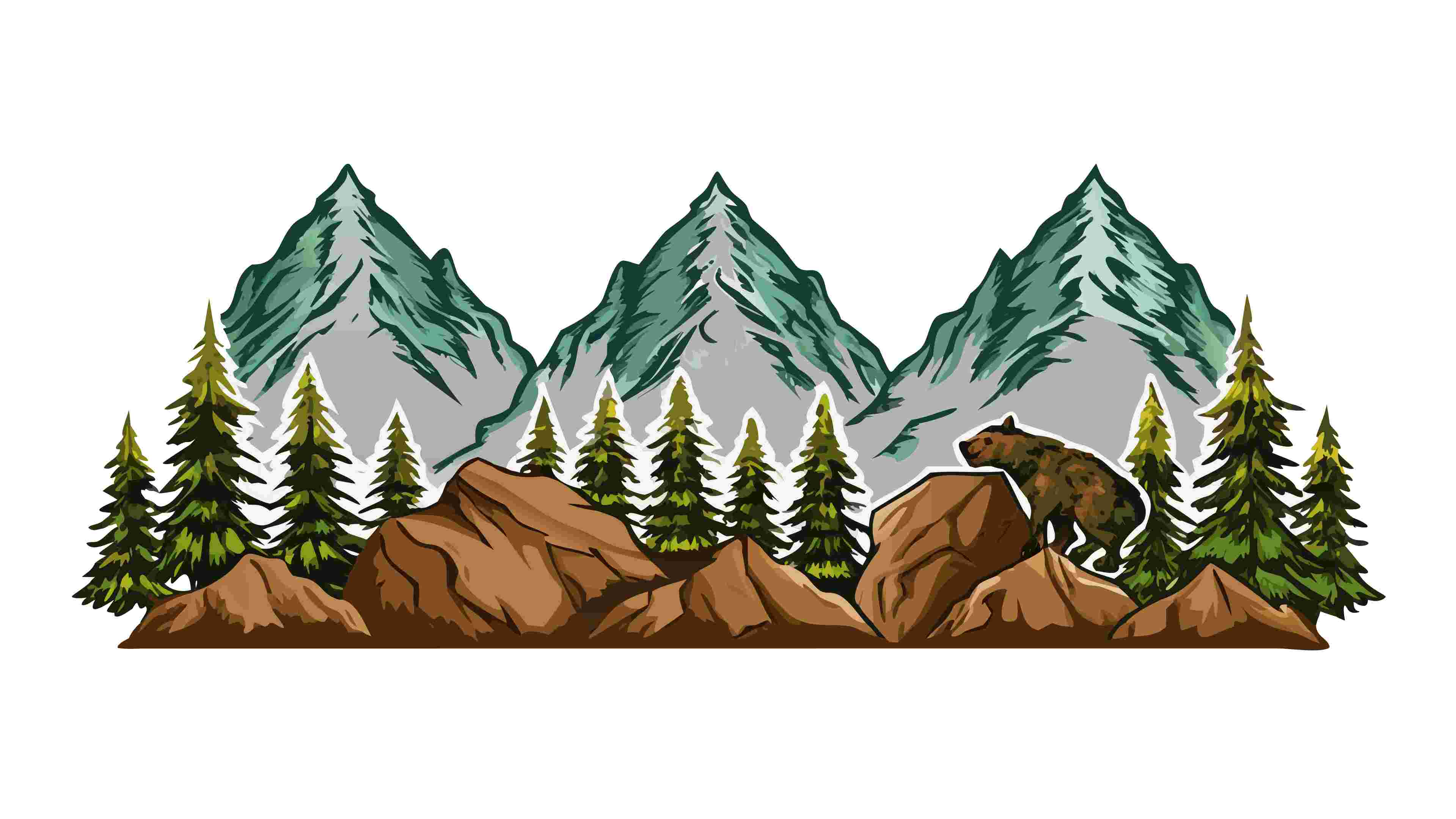 A vibrant vector border illustrating a lush green mountain landscape, densely covered with forest trees. This natural and serene design is perfect for outdoor themes, eco-friendly projects, or tranquil backgrounds, vector design Generative AI