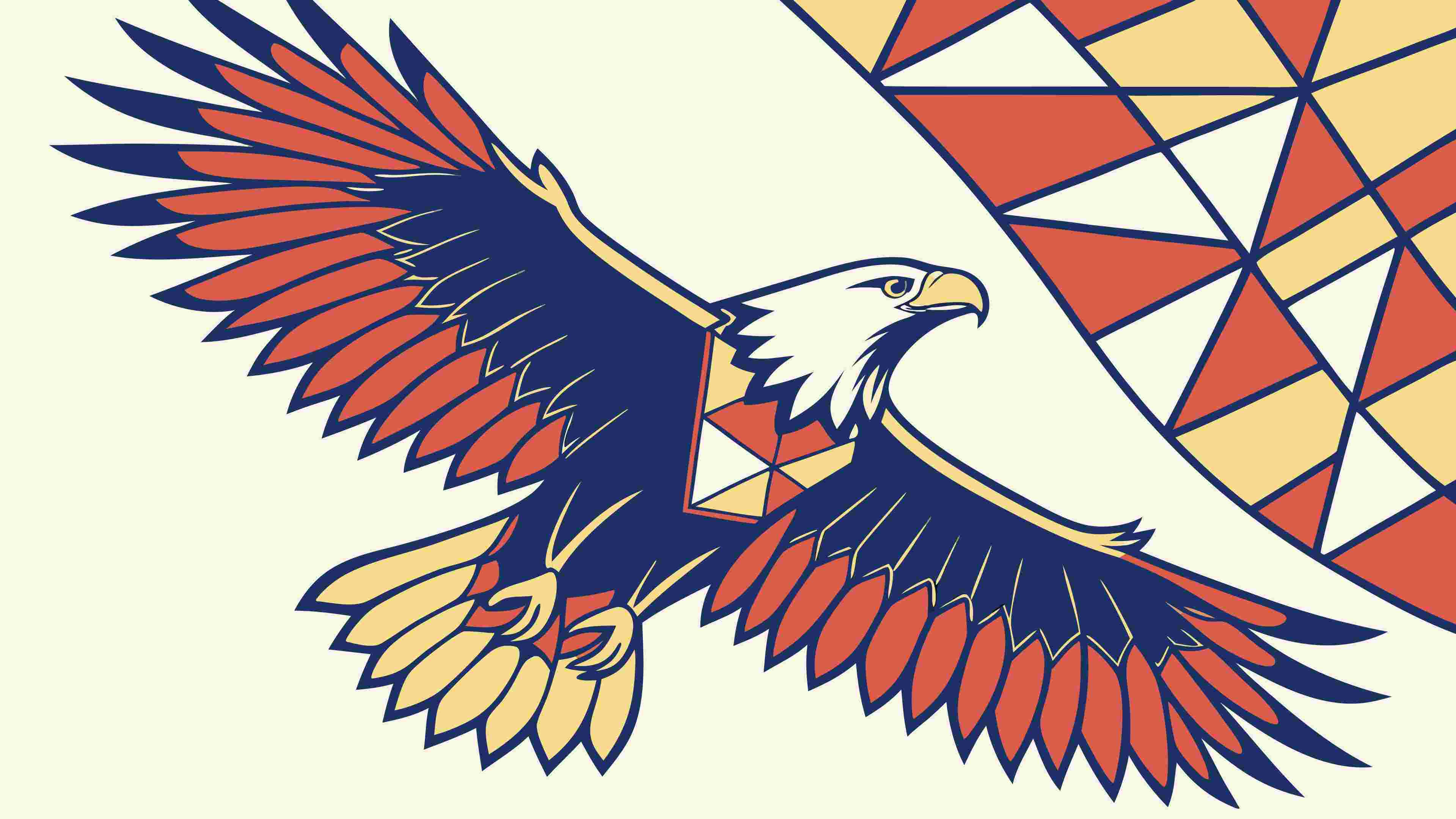 A powerful vector illustration capturing a majestic bald eagle in full flight, its wings outstretched against an abstract geometric background. Ideal for themes of freedom, patriotism, wildlife, or environmental conservation. The bold colors and strong lines emphasize its regal presence, making it perfect for impactful designs and national symbols, vector design Generative AI