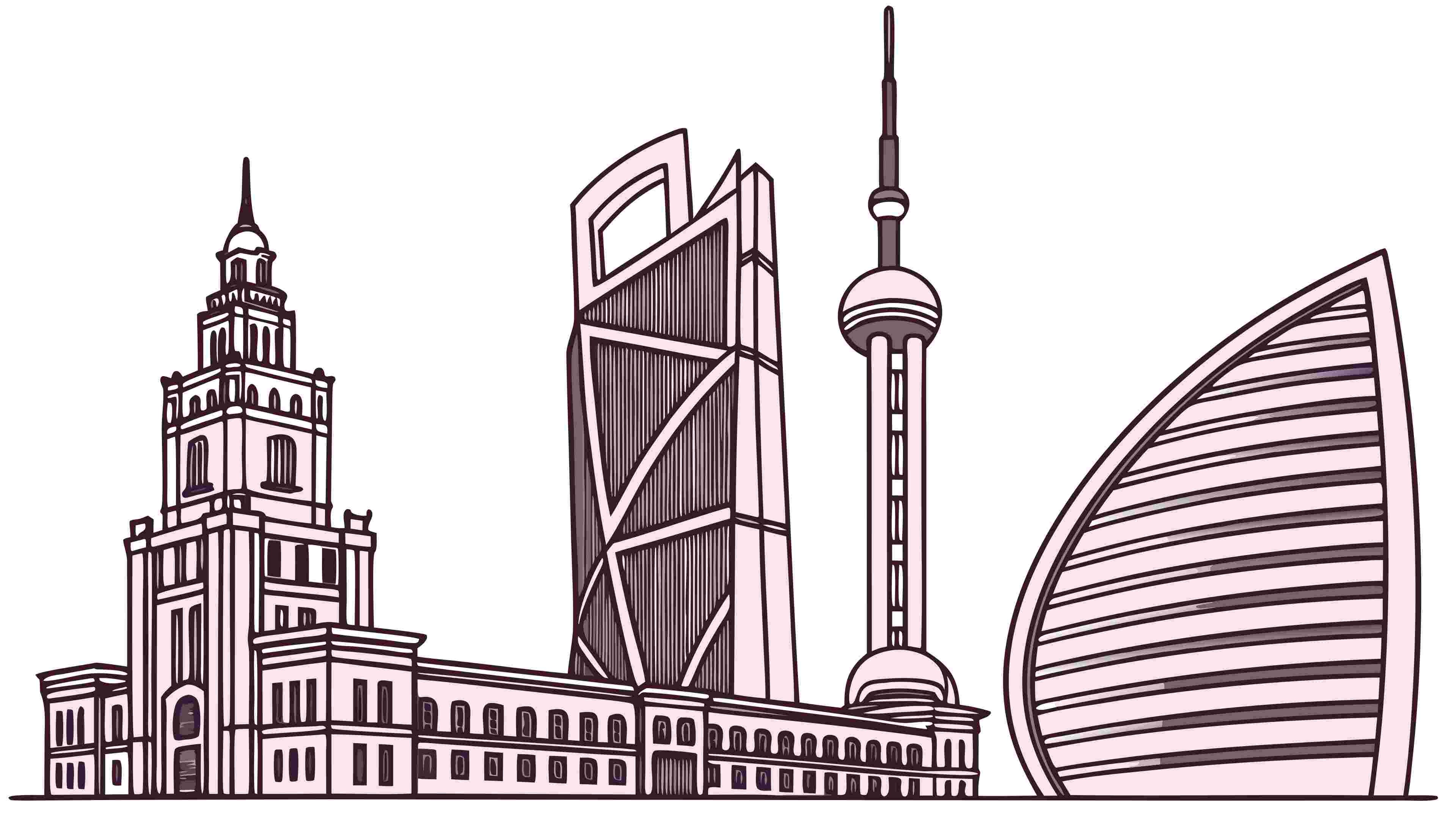 A striking vector illustration of the modern Shanghai skyline, featuring the distinctive Oriental Pearl TV Tower and other contemporary skyscrapers. Perfect for themes of global business, technology, or Asian travel, vector design Generative AI.