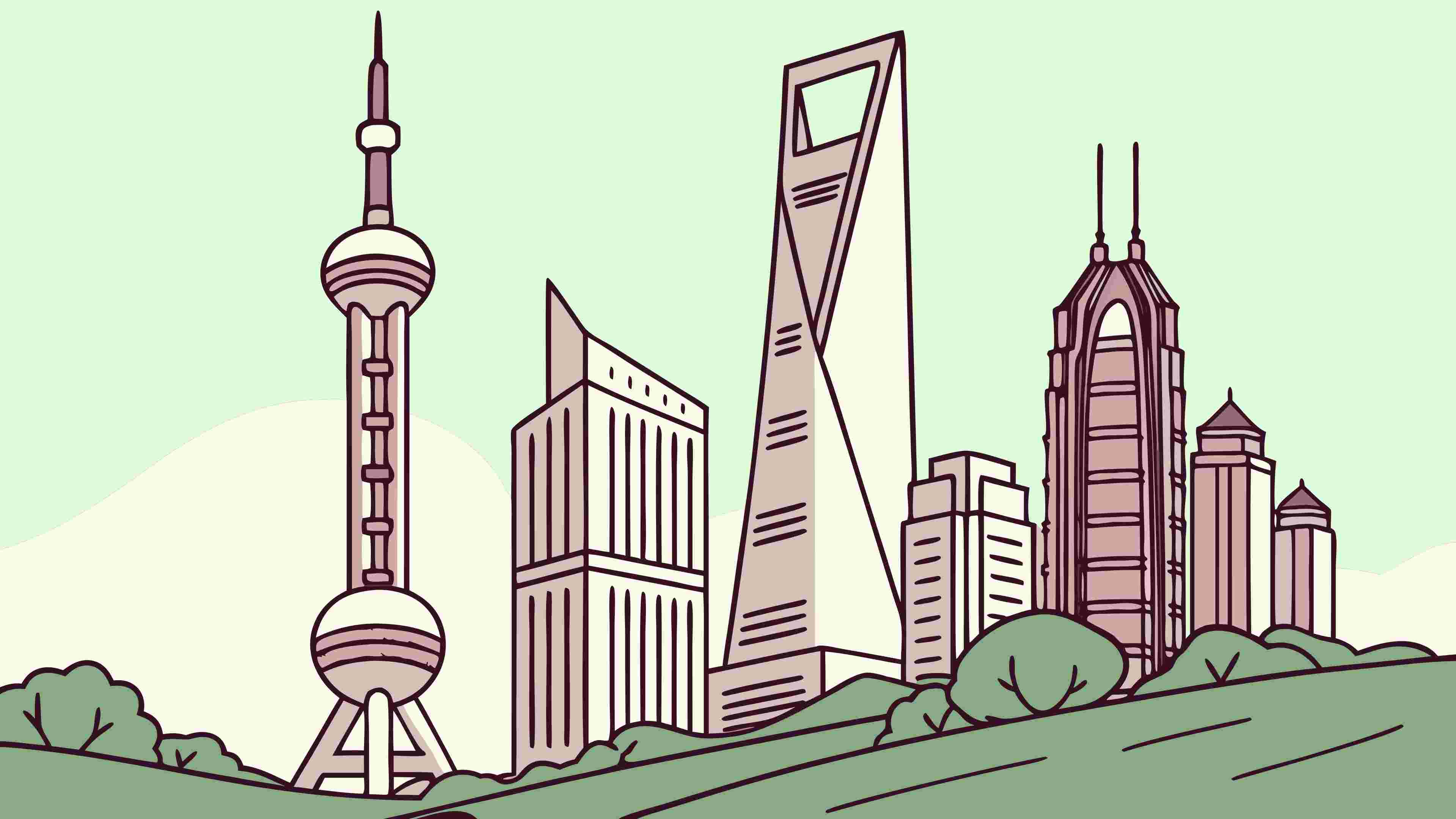 A crisp vector illustration of the modern Shanghai skyline, showcasing the distinctive Oriental Pearl TV Tower and other contemporary skyscrapers against a blue sky. Ideal for global business, technology, or Asian travel themes, vector design Generative AI.