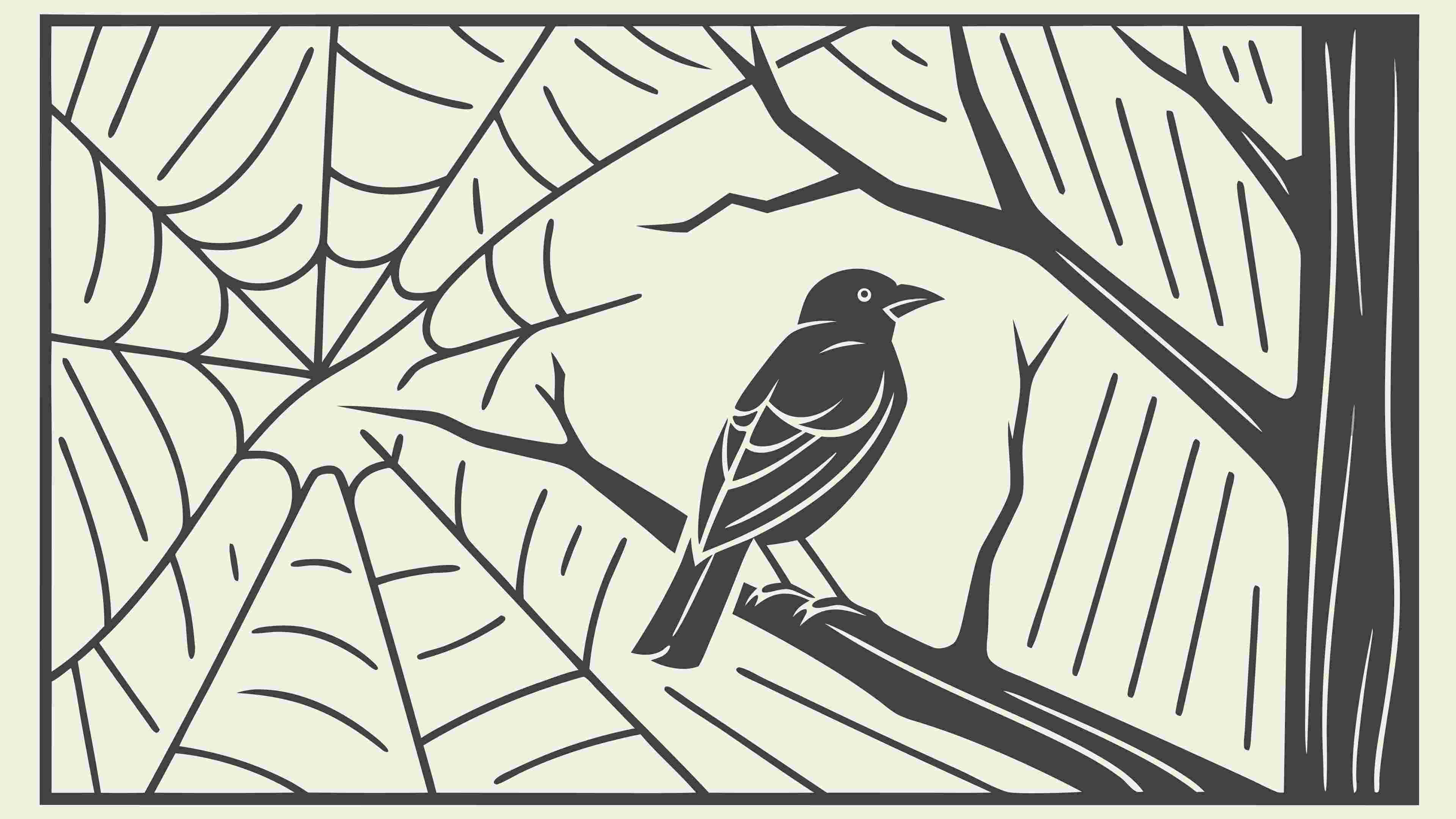 Mysterious Crow on Bare Tree Branch in Spiderweb, vector design Generative AI