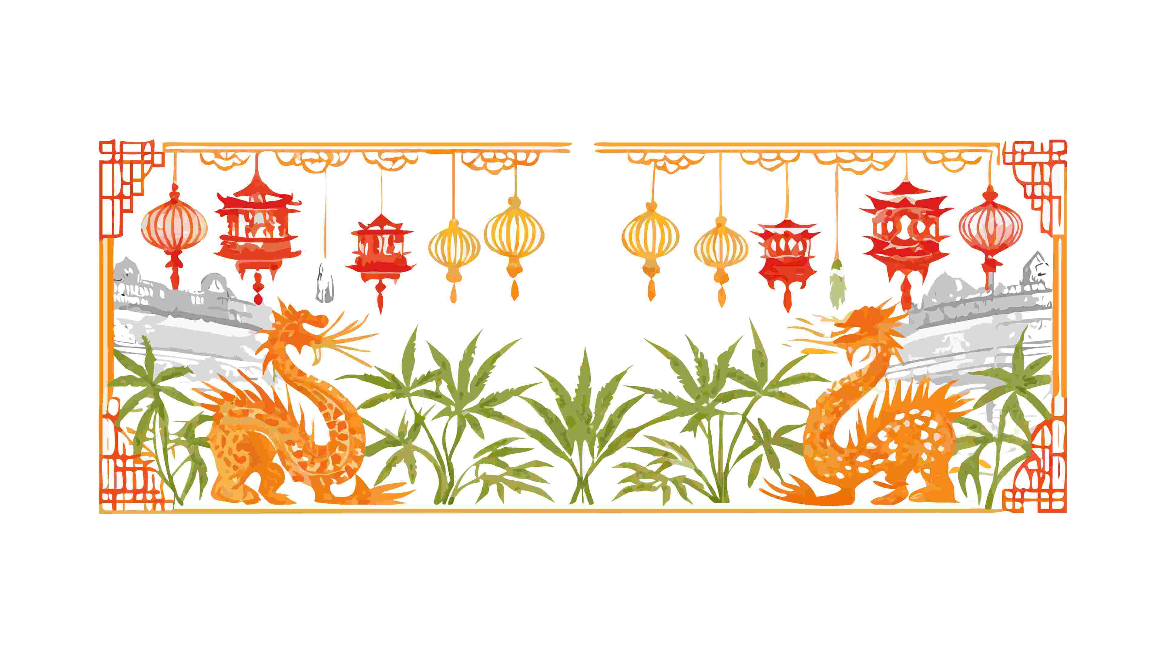Mythical Eastern Dragon Border with Intricate Decorative Patterns, vector design Generative AI