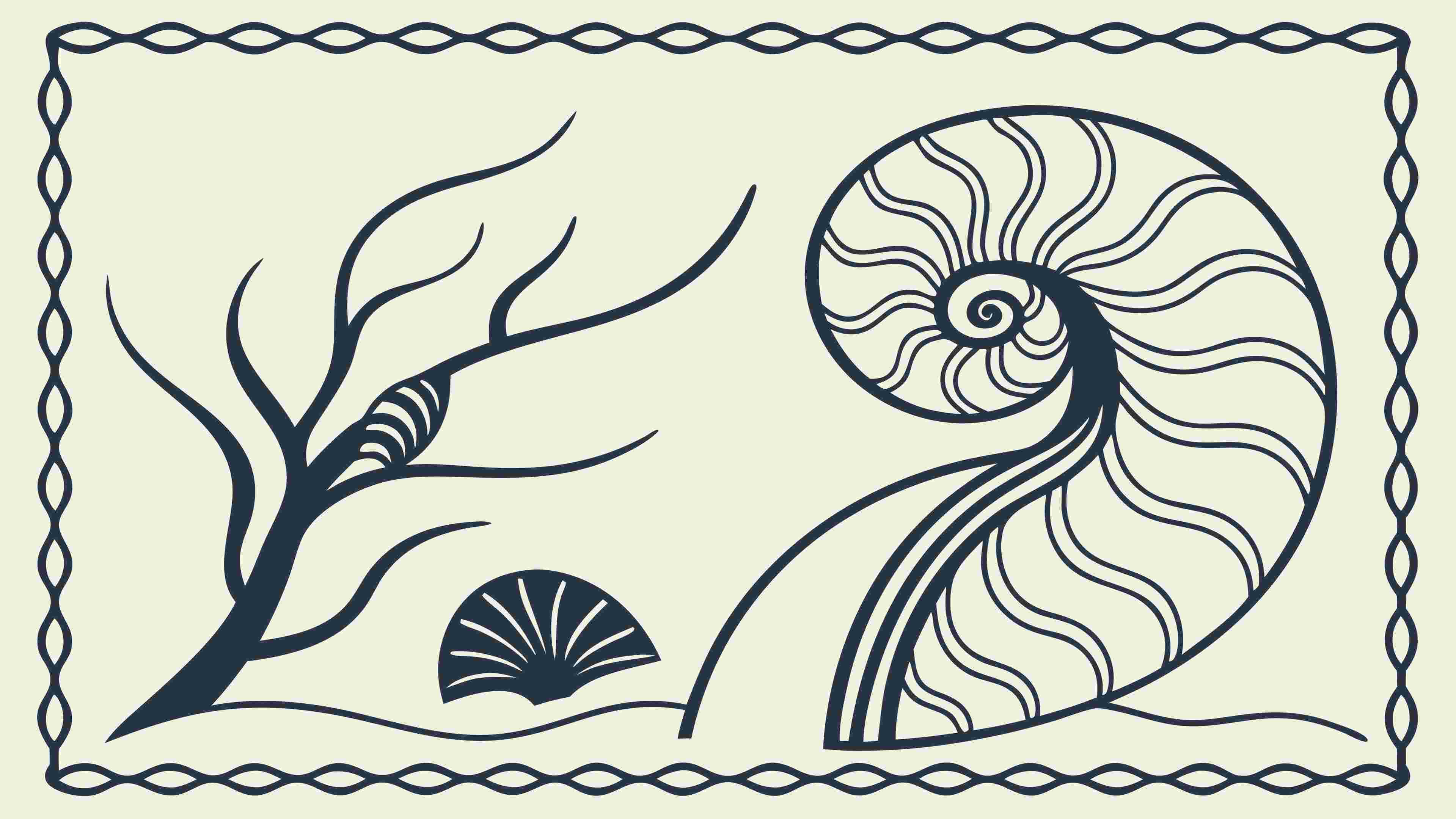 An ornate vector frame featuring a nautilus shell and intricate sea waves, creating a captivating marine-themed design. This elegant graphic is perfect for luxury branding, decorative borders, or artistic illustrations, evoking natural beauty and timelessness, vector design Generative AI
