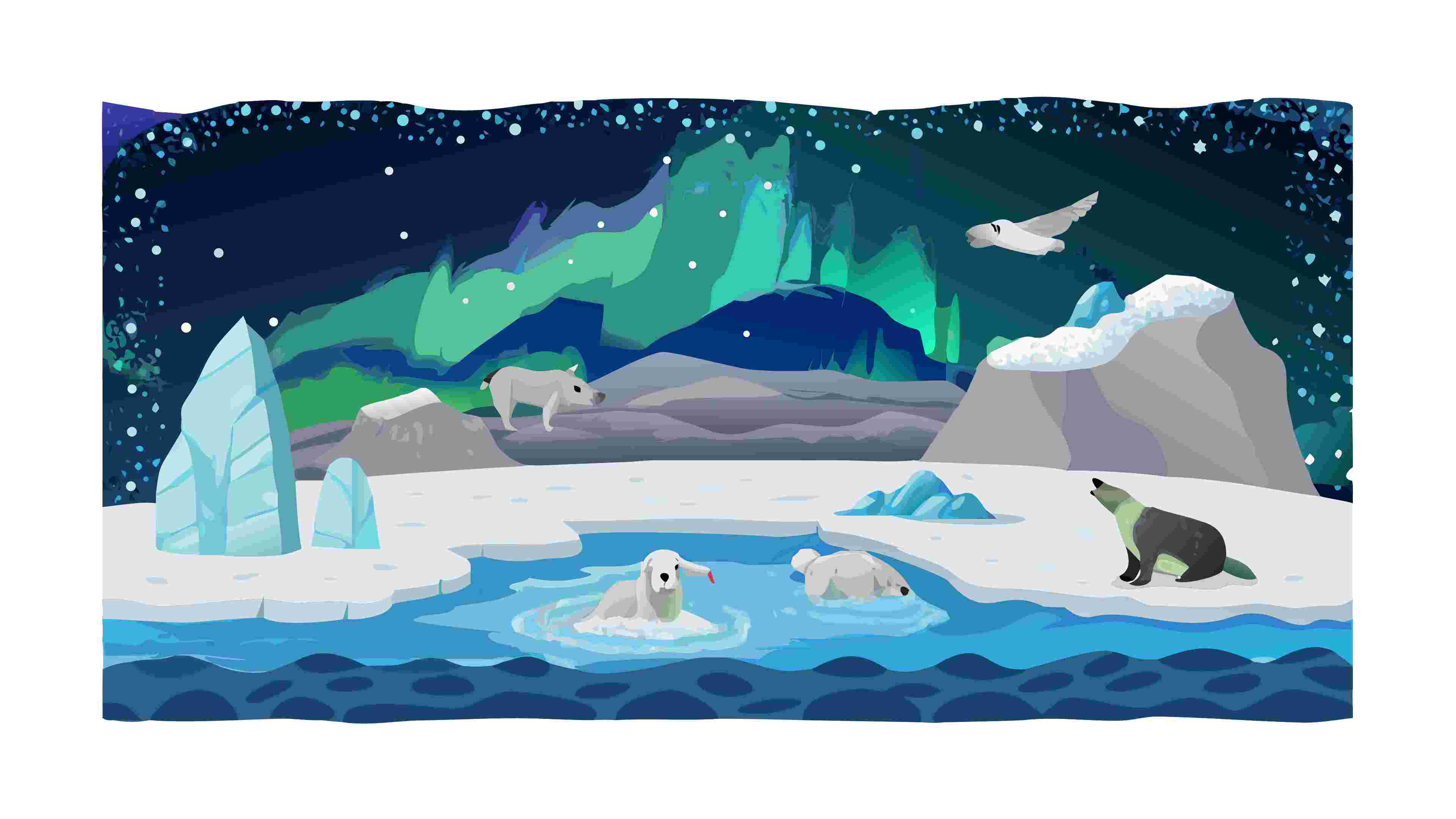 Northern Lights Over Arctic Polar Bear Landscape Vector, vector design Generative AI