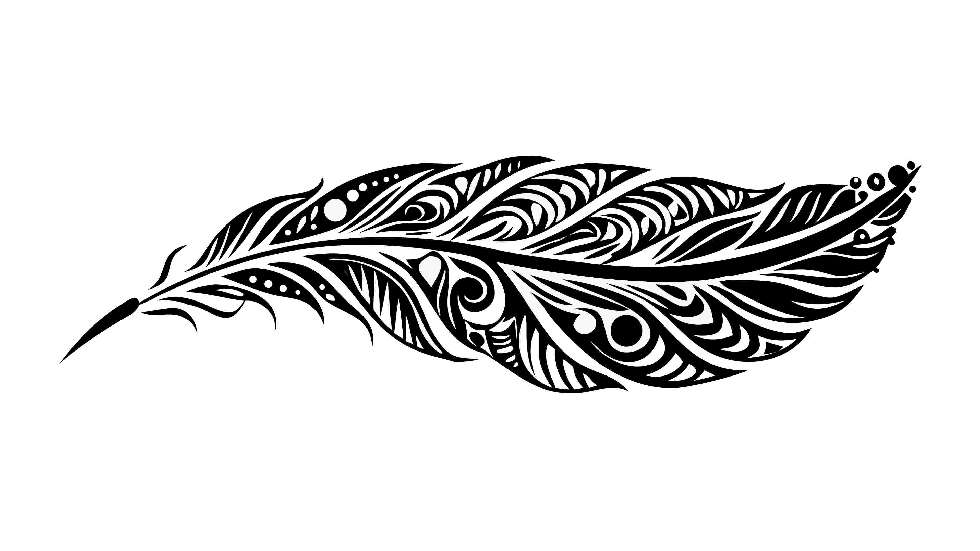 An exquisite vector illustration of an ornate tribal feather, featuring highly detailed patterns and graceful curves. Ideal for tattoo designs, cultural art, spiritual symbols, or elegant decorative elements. The intricate craftsmanship and profound symbolic meaning evoke a sense of ancient beauty and freedom, perfect for sophisticated and expressive graphic projects, vector design Generative AI
