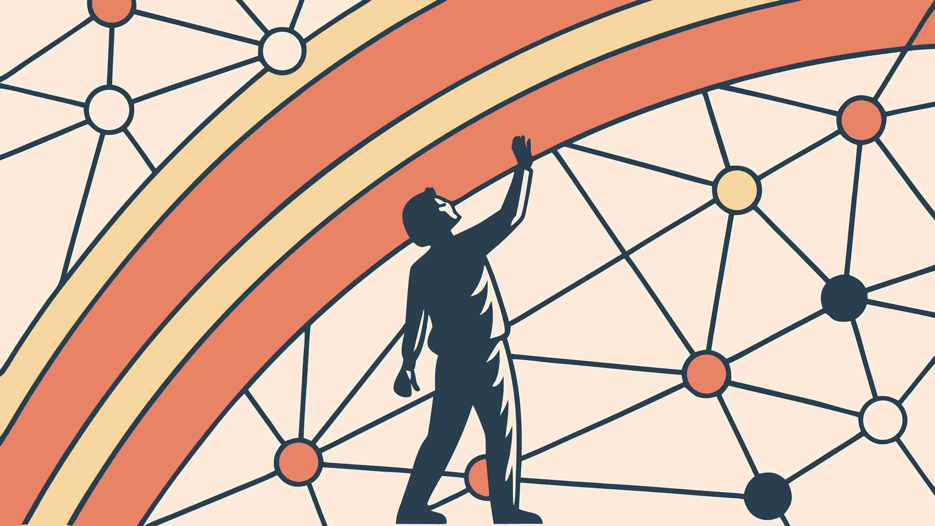 A conceptual vector illustration depicting a person interacting with an abstract global network or web of connections. Symbolizes digital communication, social networking, or worldwide data exchange, ideal for technology or business themes, vector design Generative AI.